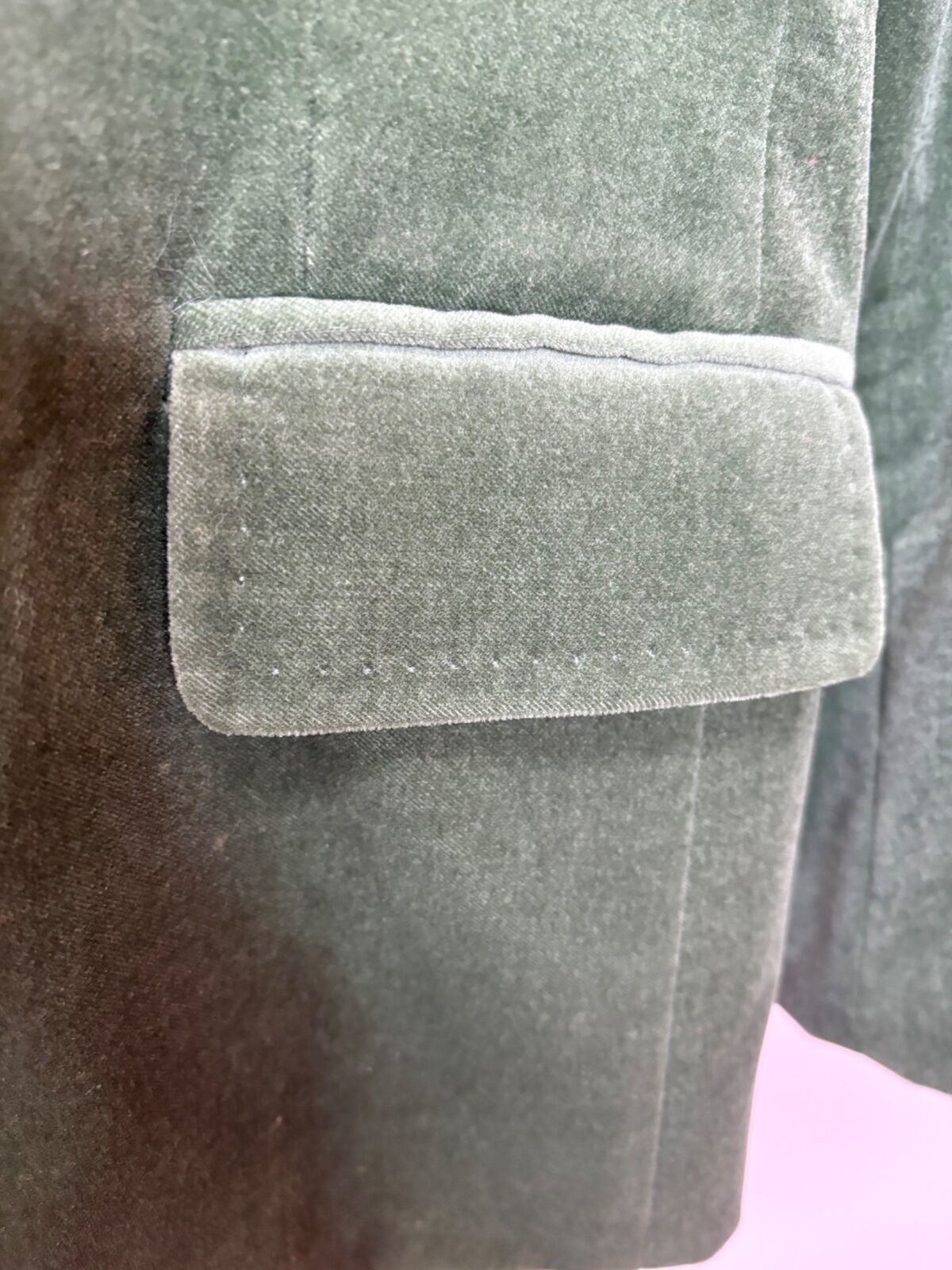 Upgrade your wardrobe with this luxurious velvet blazer. Featuring a flattering cut and rich green color, it's an elegant choice for a polished look.
