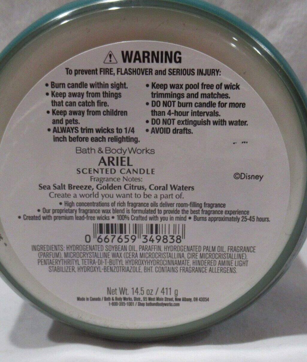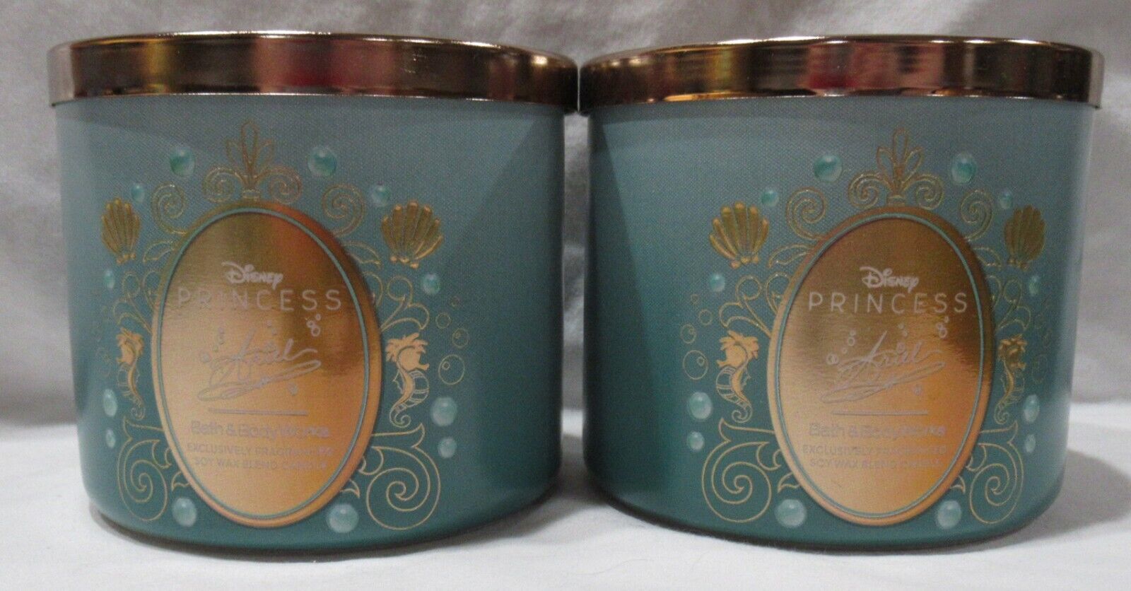 Bath & Body Works 3-wick Scented Candle Lot Set of 2 Disney Princess ARIEL