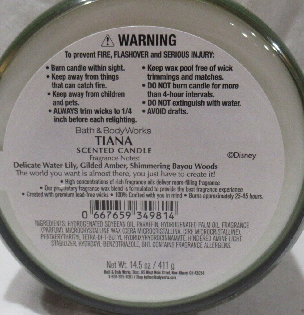 Bath & Body Works 3-wick Scented Candle Lot Set of 2 Disney Princess TIANA