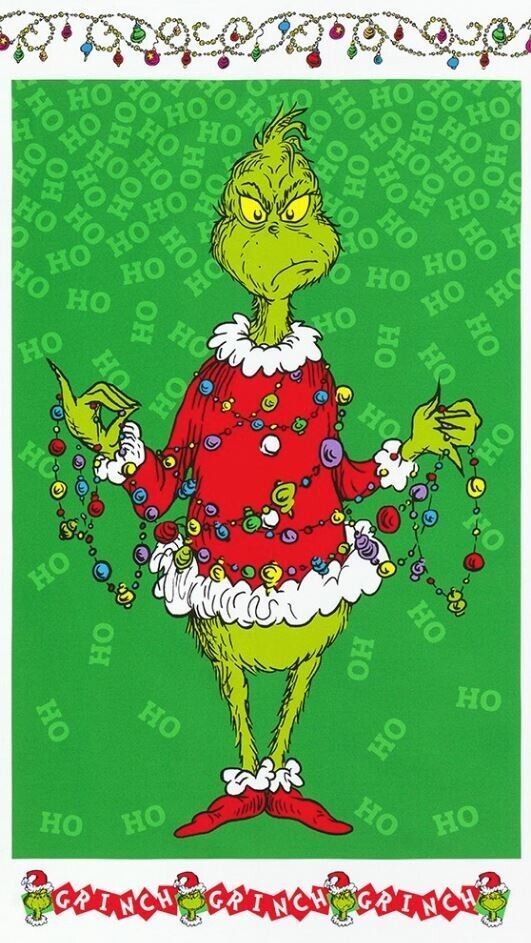 24" X 44" Panel Grinch Stole Christmas Dr. Seuss Green Fabric Panel D408.28