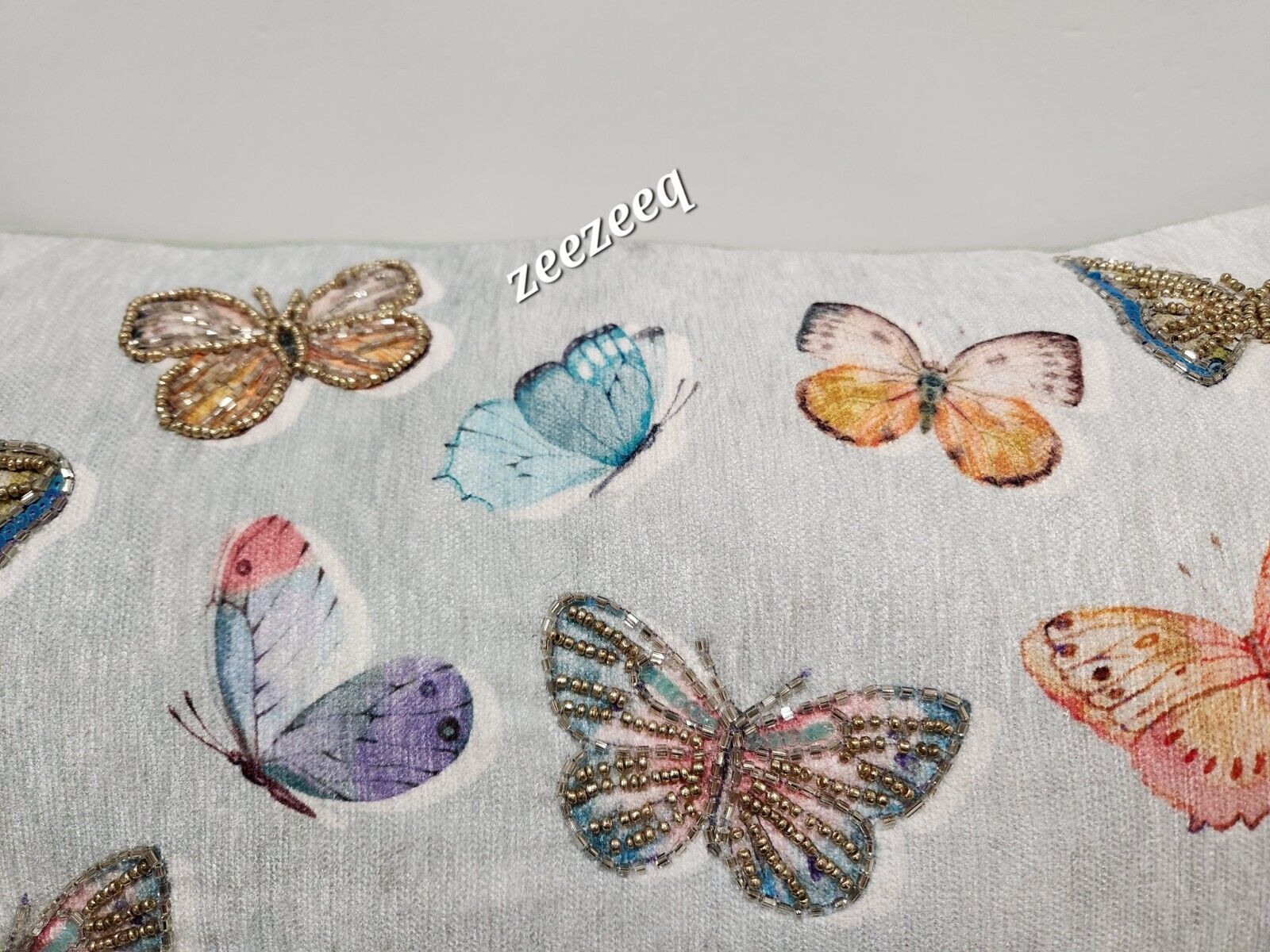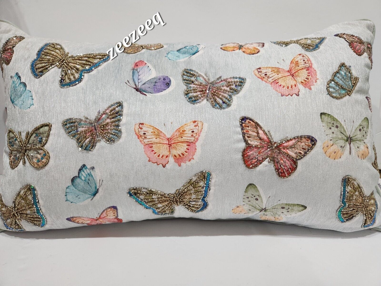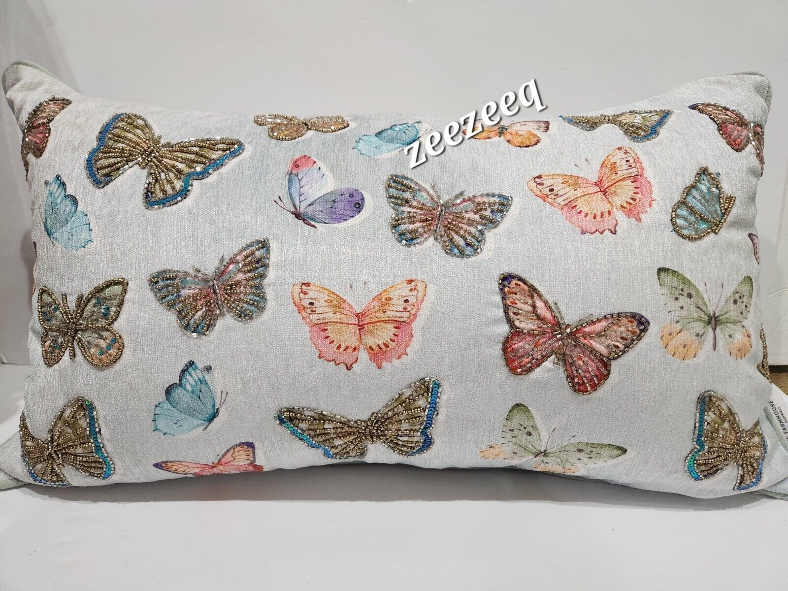 Up for sale is this super cute throw pillow for your home decor. The pillow has a beautiful butterfly beaded print. Pillow is 14" x 24". It will look great on a sofa or bed. New with tags.