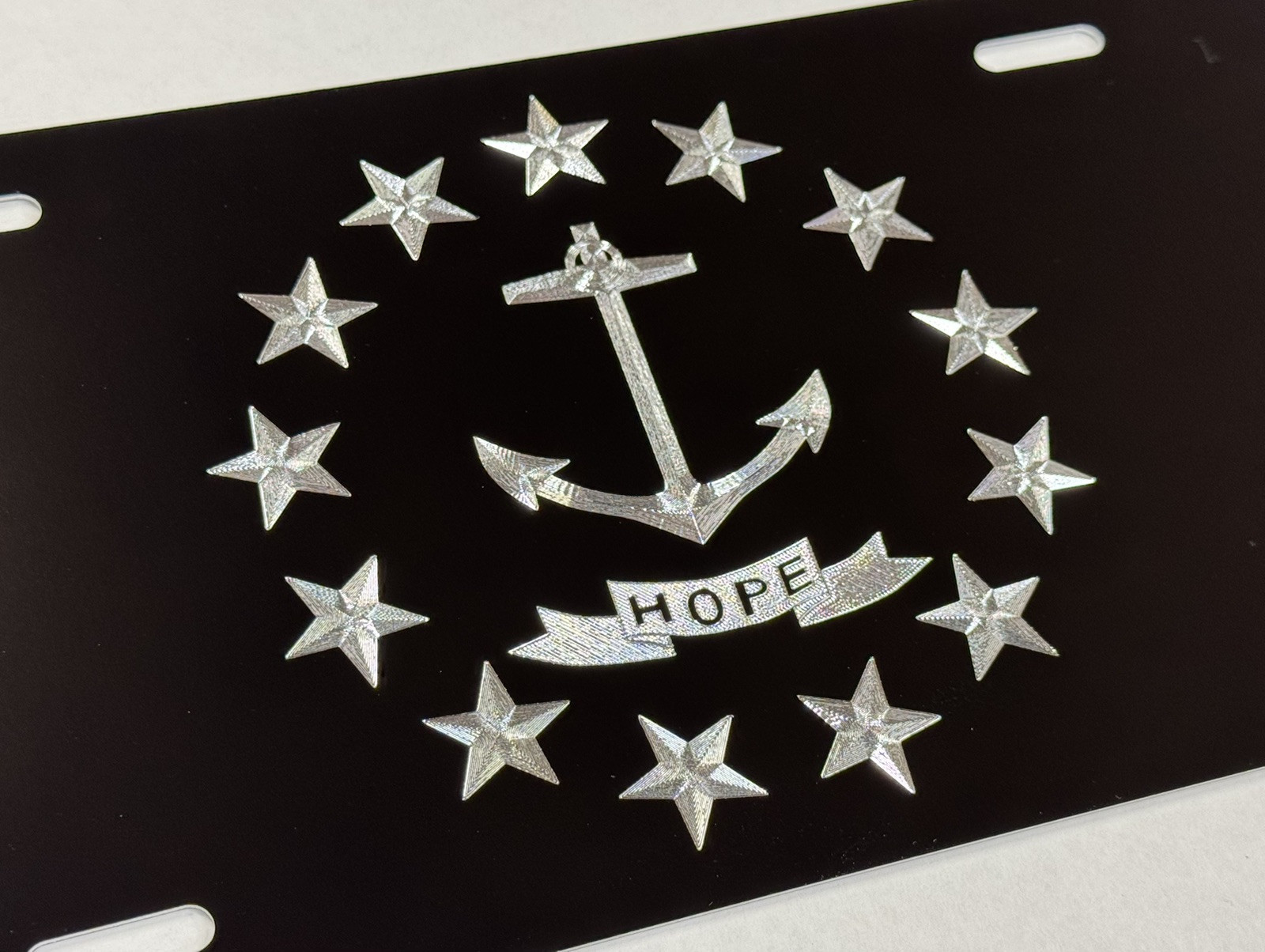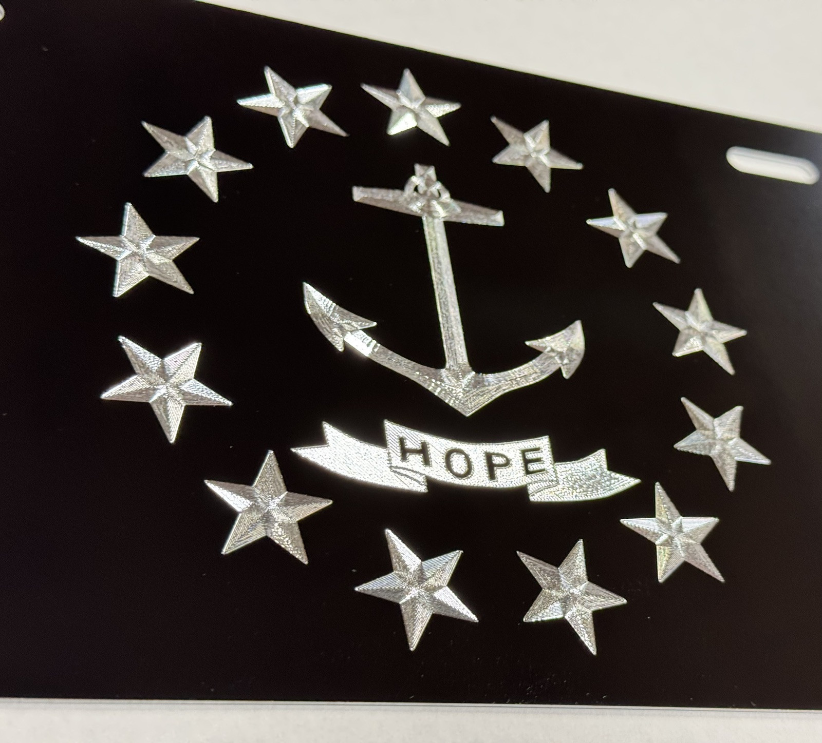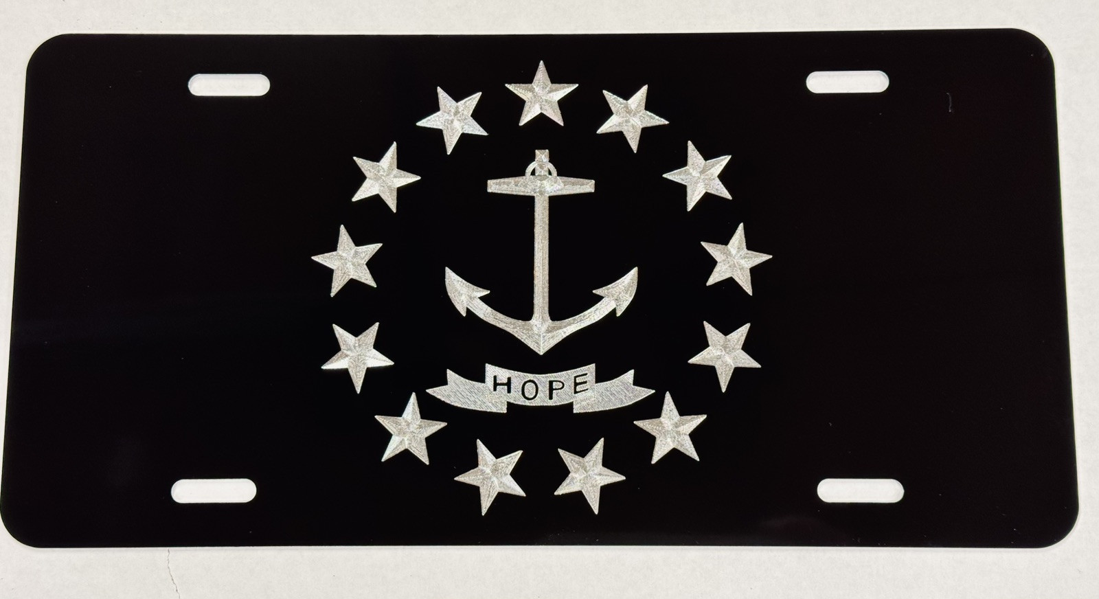 Rhode Island RI State Flag Car Tag Diamond Etched Engraved License Plate Gift