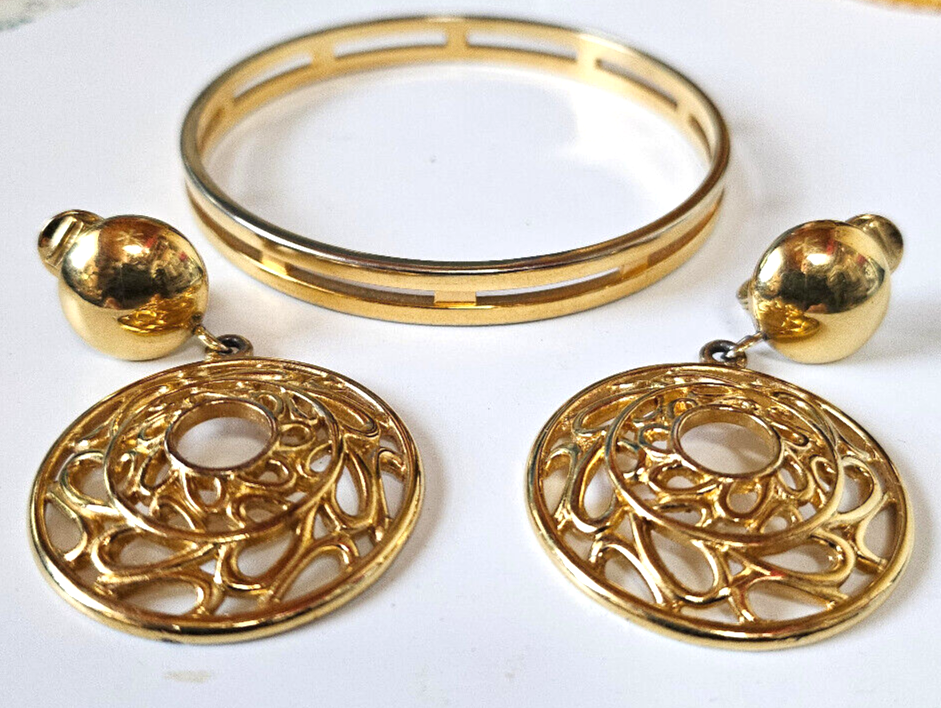 Monet Gold-tone Bangle Bracelet & Dangle Clip-Earrings Vintage added to cart.