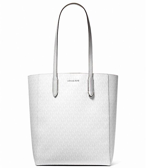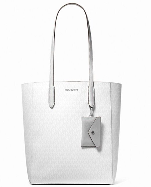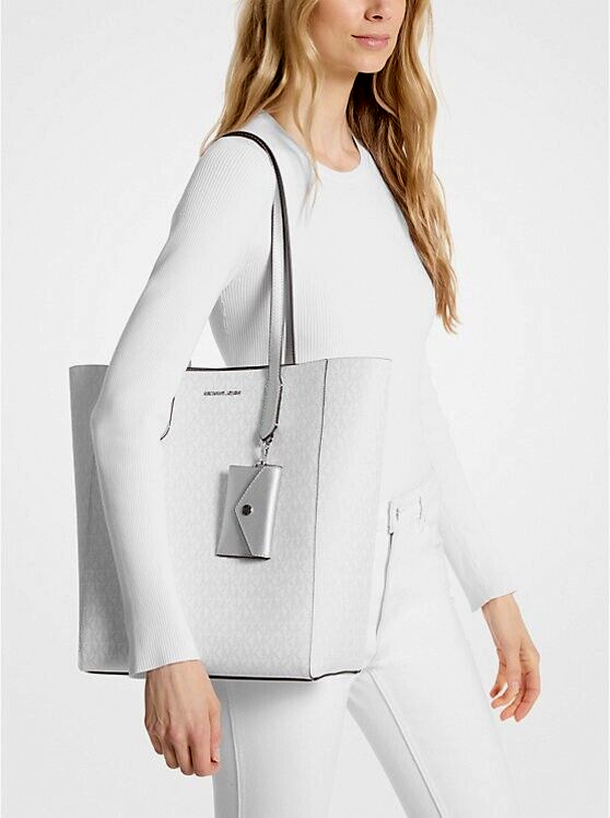 New Michael Kors Vincent Large Signature Logo Tote Bag with Coin Pouch Silver