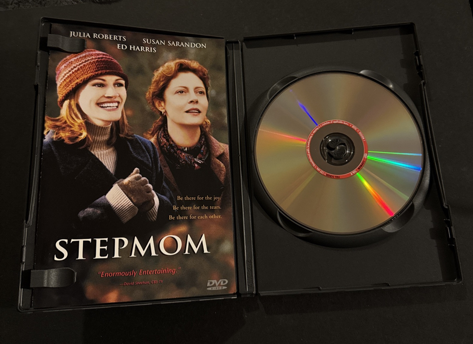 The product is the movie "Stepmom" on DVD, released in 1998 and featuring Julia Roberts and Susan Sarandon. The film falls under the drama genre with a PG-13 rating, focusing on family and life story sub-genres. The DVD includes full-screen and widescreen formats, as well as closed captioning for accessibility. Produced by Columbia Pictures, this standard edition DVD is a heartfelt and emotional story about the evolving relationships within a blended family, making it a compelling watch for viewers looking for a touching and thought-provoking film.Please look at our store for unique collectibles and quality vintage items.