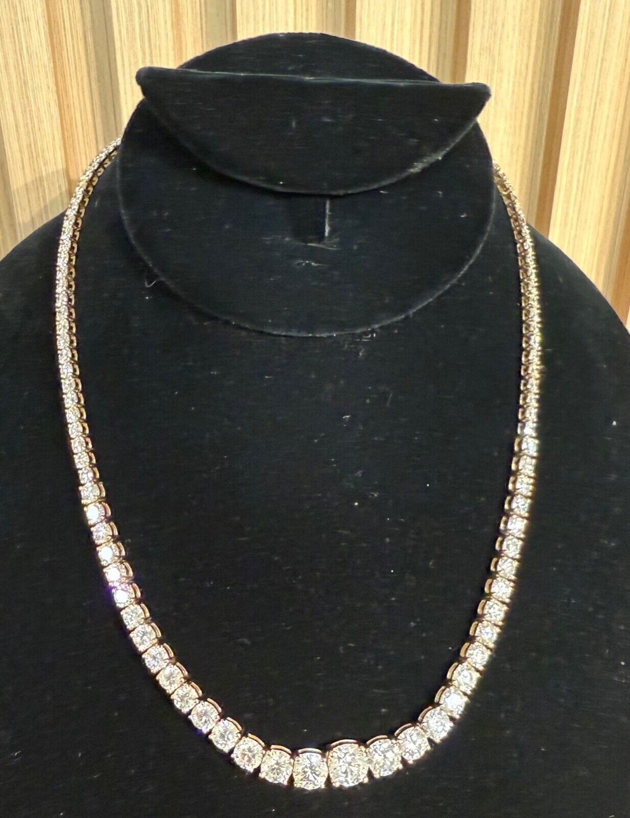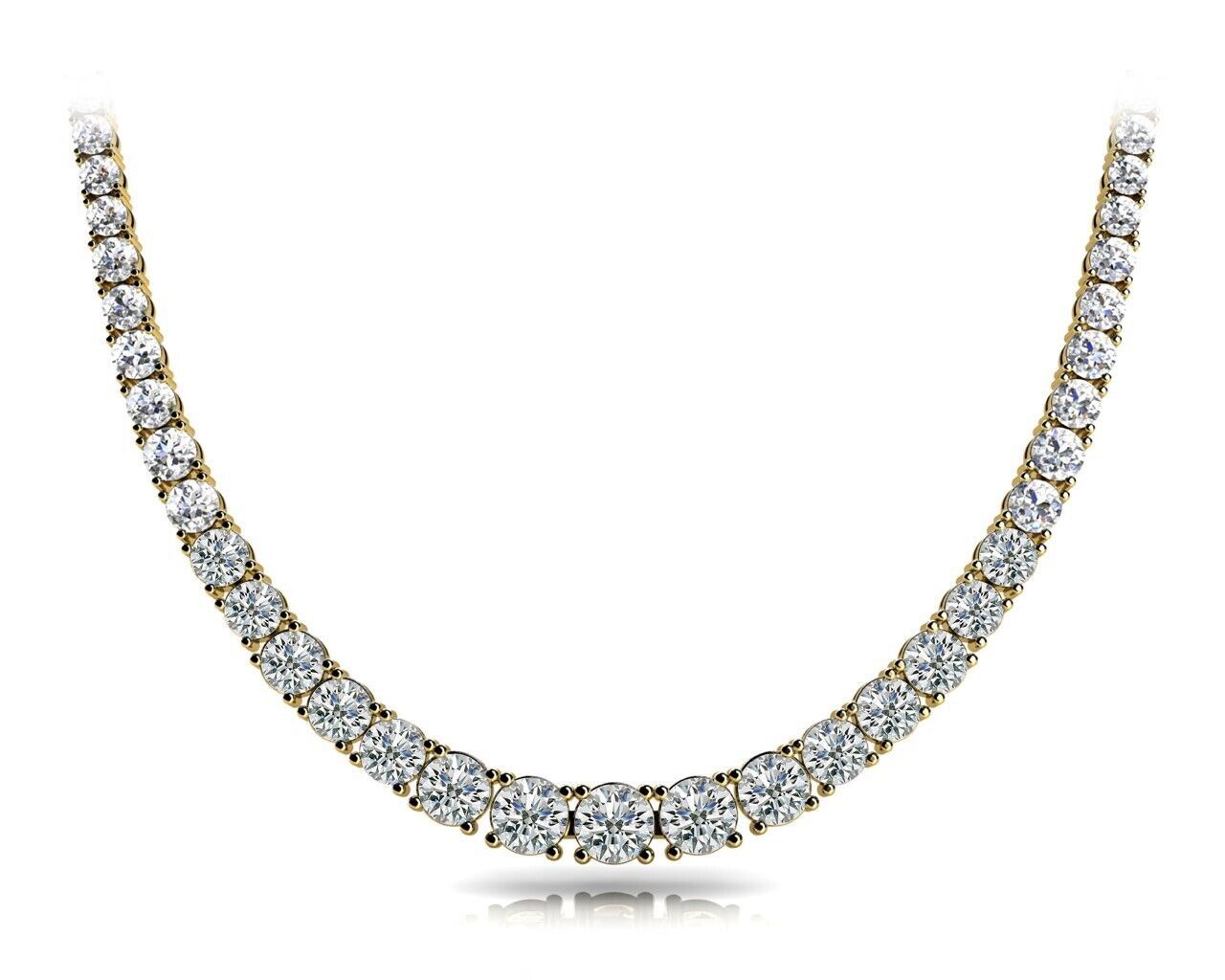 28ctw Round Lab Grown Diamond Graduated Tennis Necklace 14K Yellow Gold
