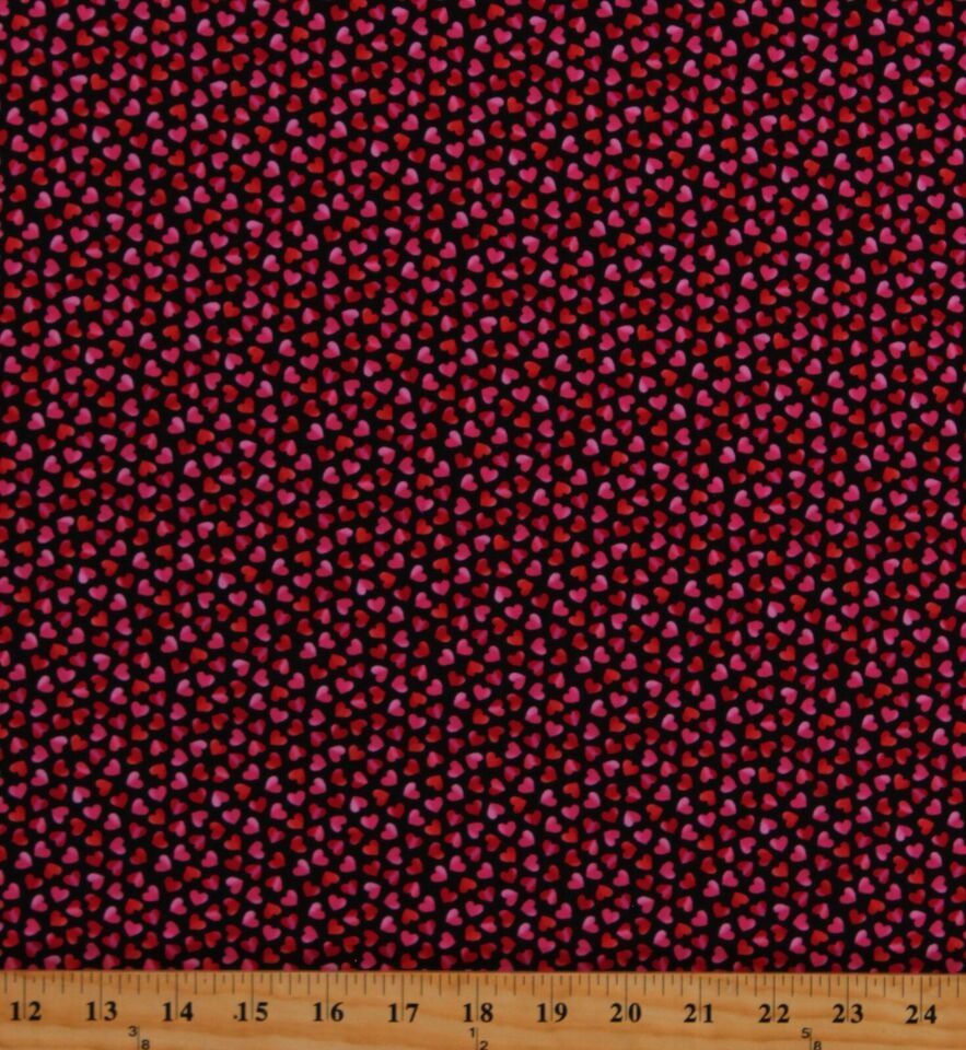 Cotton Pink and Red Hearts on Black Love Cotton Fabric Print by the Yard D380.44