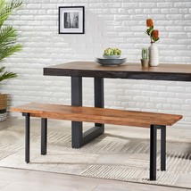 MODERN INDUSTRIAL: Our dining bench incorporates a powder-coated frame with a sleek wood top to create an understated modern industrial design. Featuring smooth metal contrasted by natural wood, this bench offers a chic aesthetic to any home.