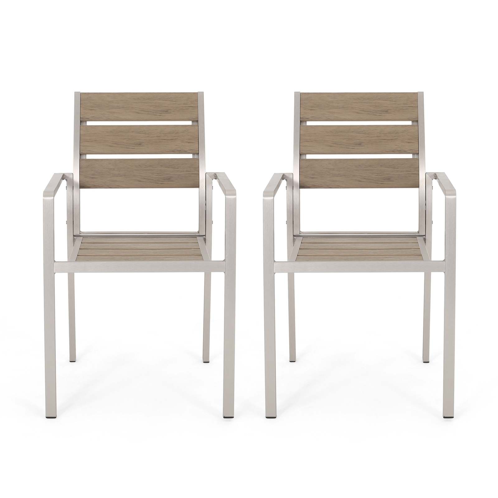 MODERN DESIGN: With clean, precise lines, our dining chairs are the ideal modern accessory for your outdoor space. Finished with sleek faux wood and smooth aluminum frames, this set not only offers a chic, minimalistic look but also provides incredible structure.