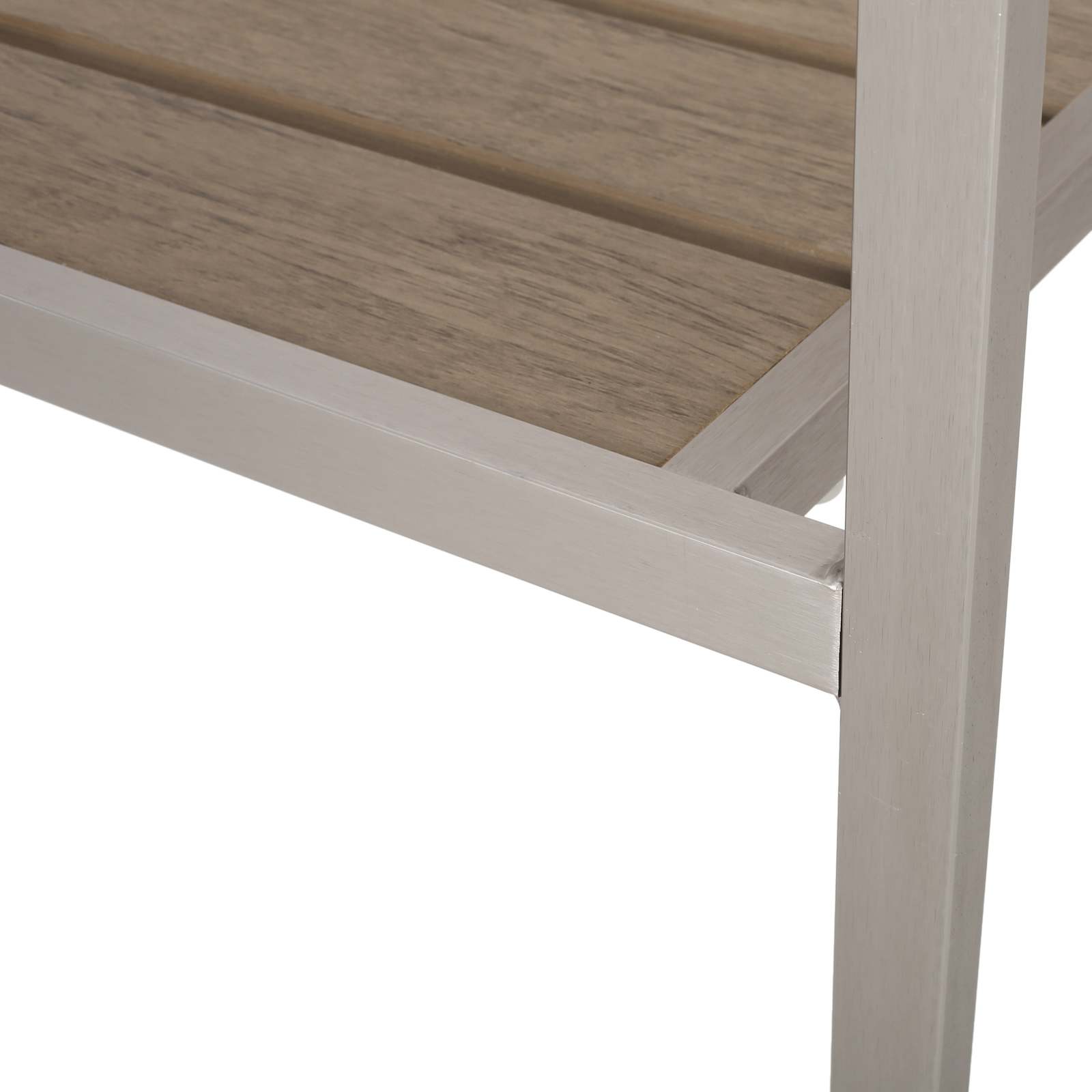 This piece is designed with lightweight aluminum, making it easy to relocate. The seating finish has attractive slat paneling that allows rain to pass through, enabling quick drying while lending a refined, timeless appearance and added stability.