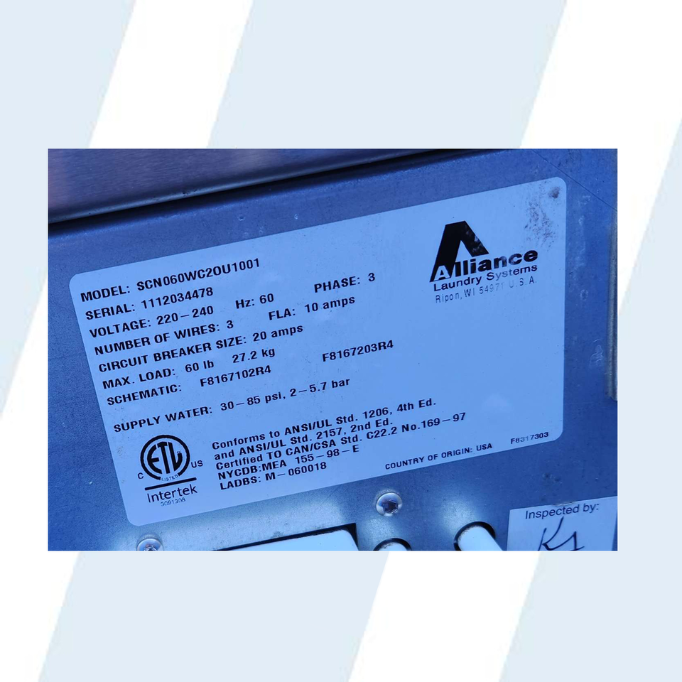 SPEED QUEEN 60LBS 3PHASE FRONT LOAD WASHER M:SCN060WC2OU1001 S/N: 111203447[REF]