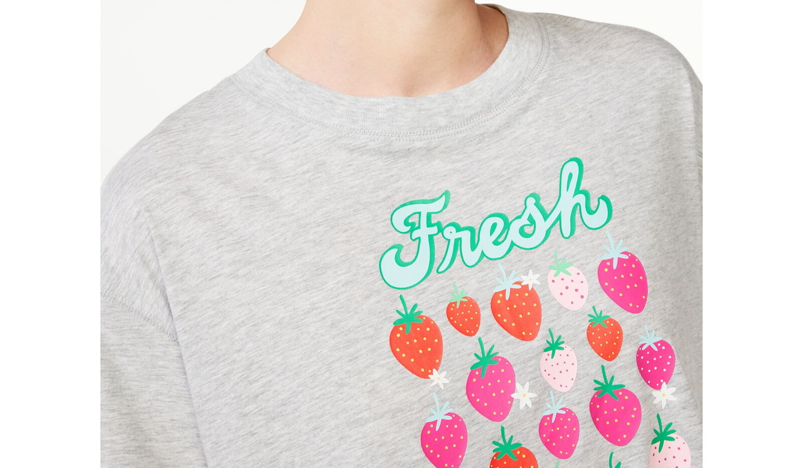 Features: Soft jersey knit fabric; drop shoulder; cropped; raw edge hem; graphic print