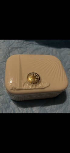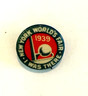 This 25-year old 1939 New York World's Fair pin features a cloisonne enameled Trylon and Perisphere logo. The Trylon and Perisphere were two modernistic structures at the center of the fairgrounds which became the central symbol of the fair. The gold-colored metal pin is in brand new condition and measures 1-3/8? x 1-1/8?. The backside of a lapel pin has a double butterfly clutch. The 1939?40 New York World's Fair was the second largest American world's fair of all time. Many countries around the world participated in it, and over 44 million people attended its exhibits in two seasons. The NYWF of 1939?1940 was the first exposition to be based on the future, with an opening slogan of "Dawn of a New Day", and it allowed all visitors to take a look at "the world of tomorrow".