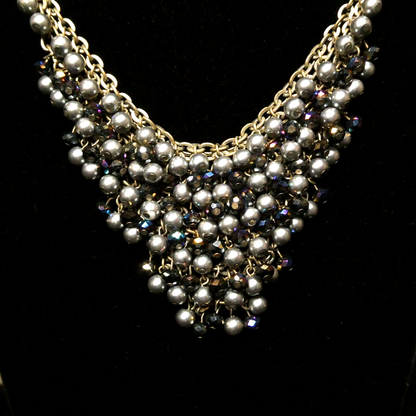 Metal Faux Pearl with Blue/Purple Beads Bib and similar items