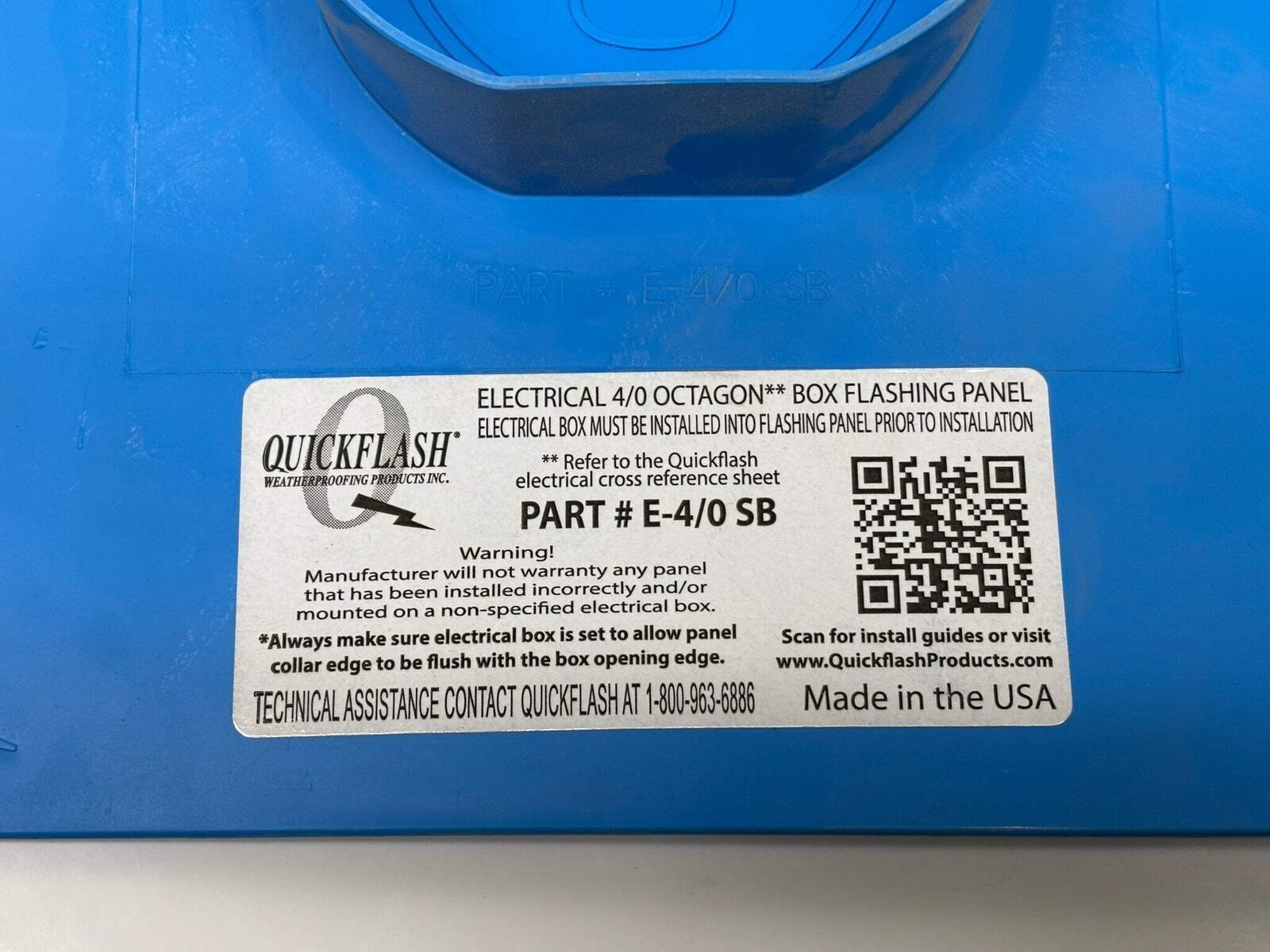 Quick Flash (E-4/0SB) ELECTRICAL 4/0 STEEL BOX FLASHING PANEL (No Box) (Lot of 1