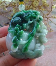 Certified Green Burma 100% Natural A Jade jadeite Pendant Dragon Peach Necklace ???? 618475