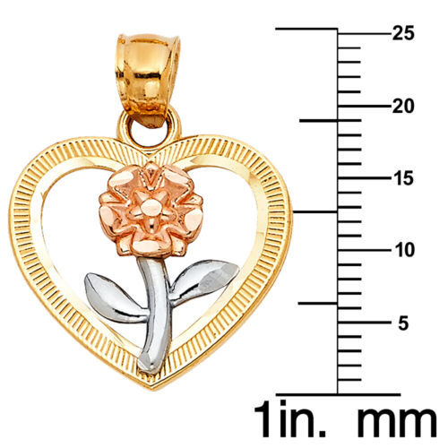 Genuine 14k Tri-Tone Gold 0.70" Flower and Heart Pendant Necklace 16" to 22"