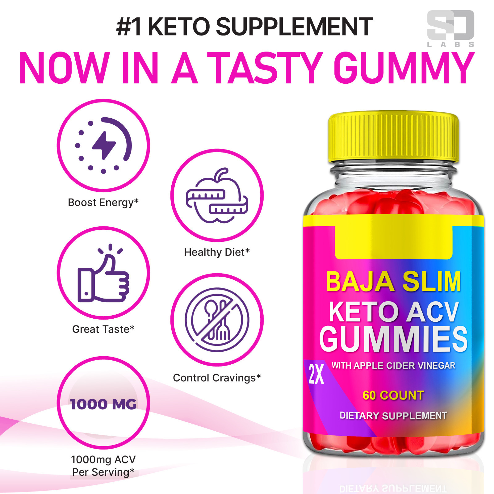 3 Pack Baja Slim Keto ACV Gummies BajaSlim Maximum Strength Vitamin Formula
