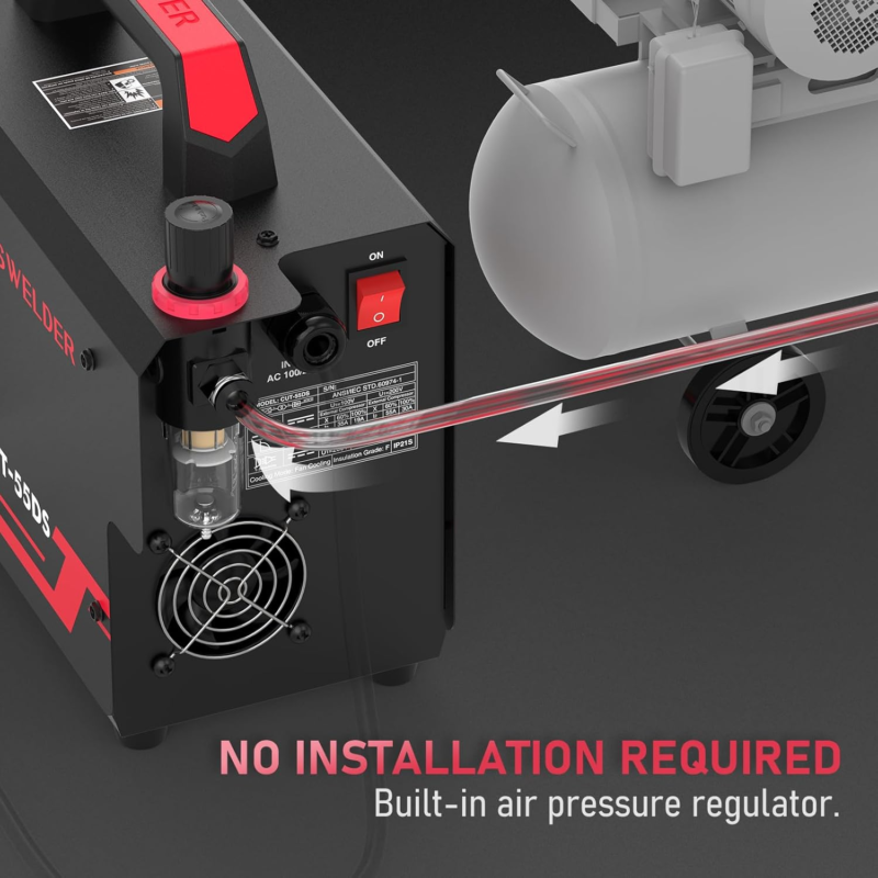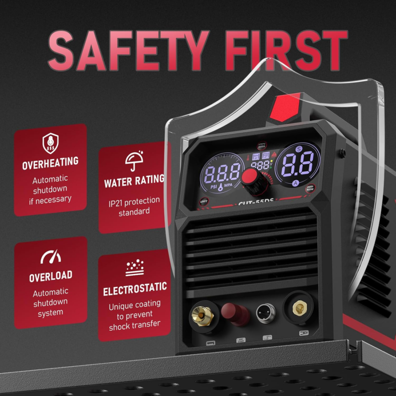 BUILT-IN POST FLOW: When you stop cutting, the air runs on for a minute to cool the consumable of the plasma cutter torch. This will extend consumable life.