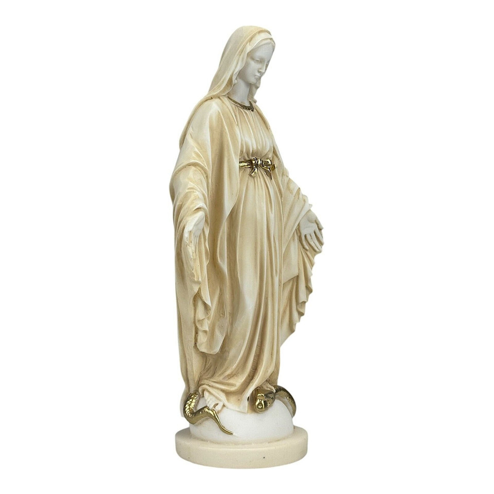 Estatua escultura de marmol fundido griego Virgen María de Nuestra Señora de Gracia 9 pulgadas acabado patina