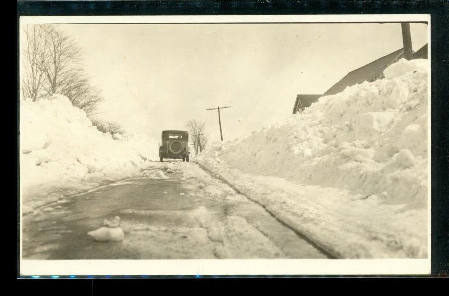 Vintage Automobile Postcard RPPC Real Photo Blizzard Snow Roads Ford Model A
