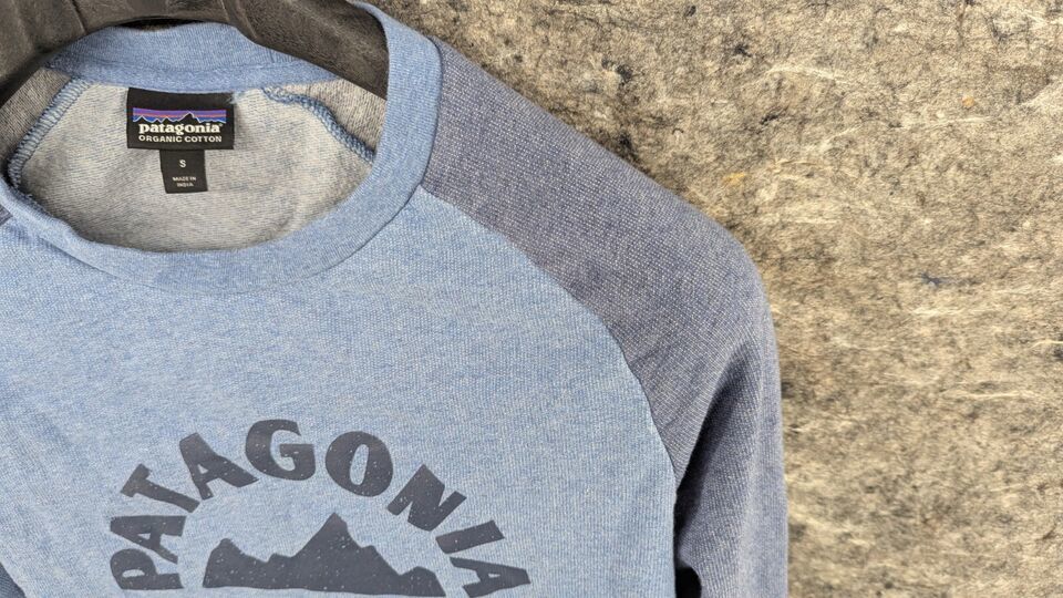 Patagonia Mens S Geologers Lt Weight Sweatshirt-Organic-Blue/Gray-Lge Spellout