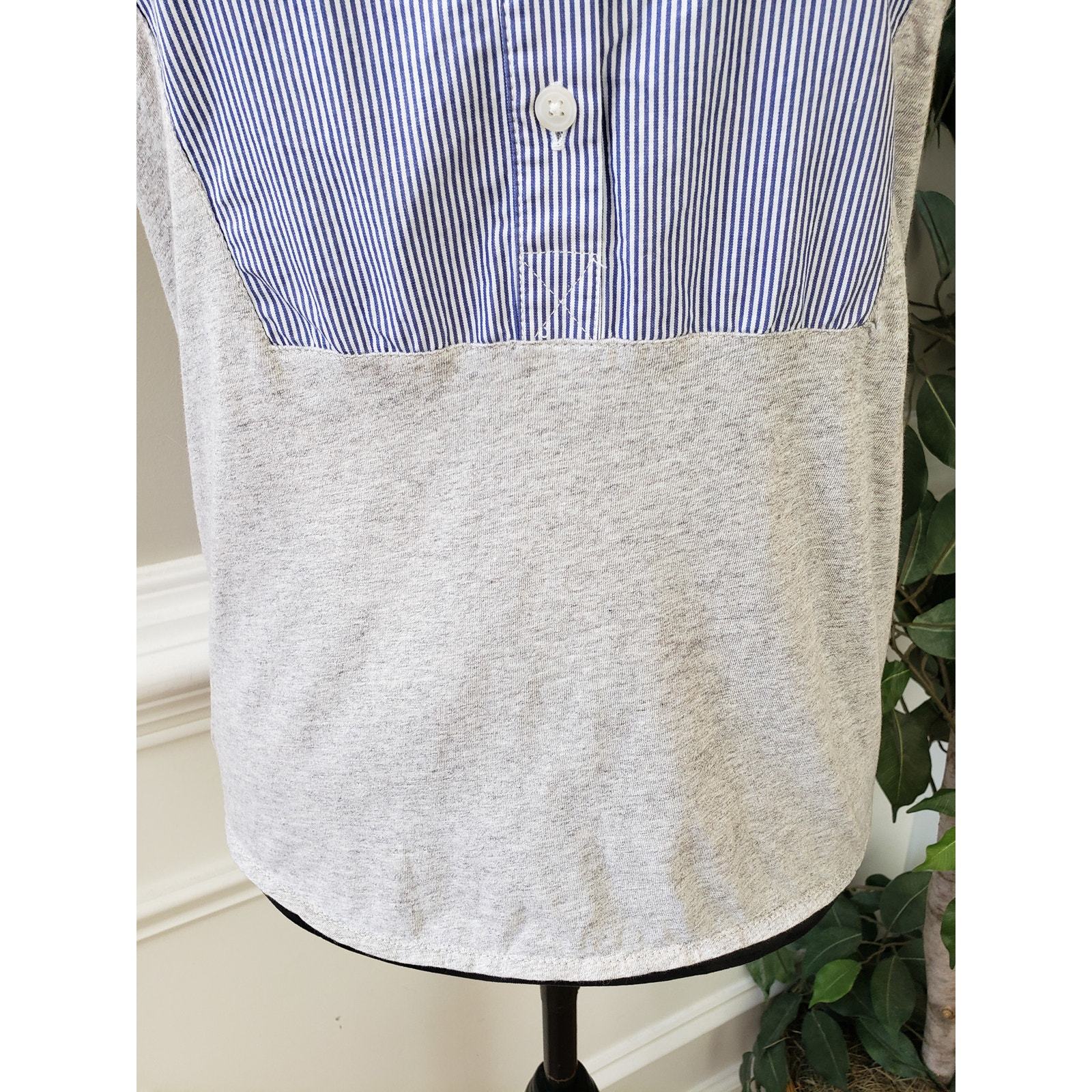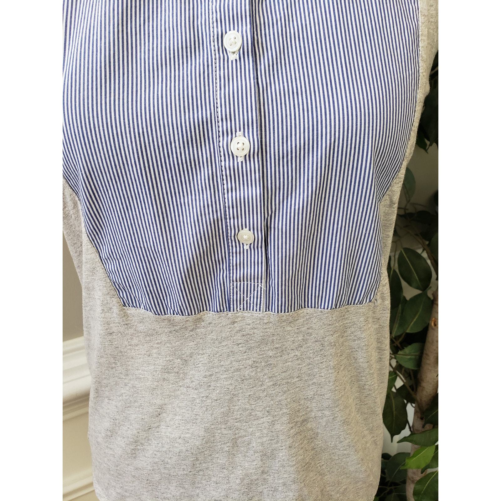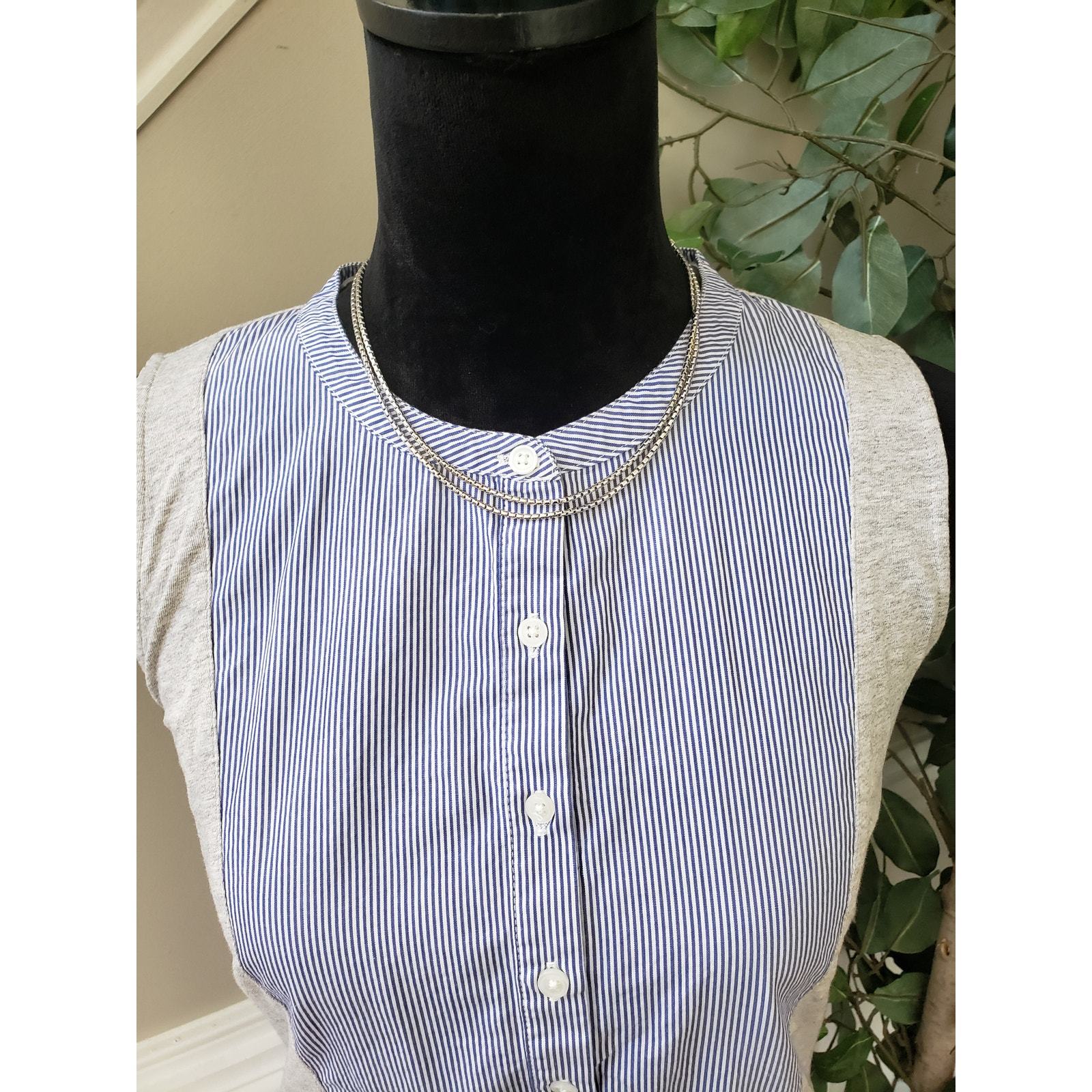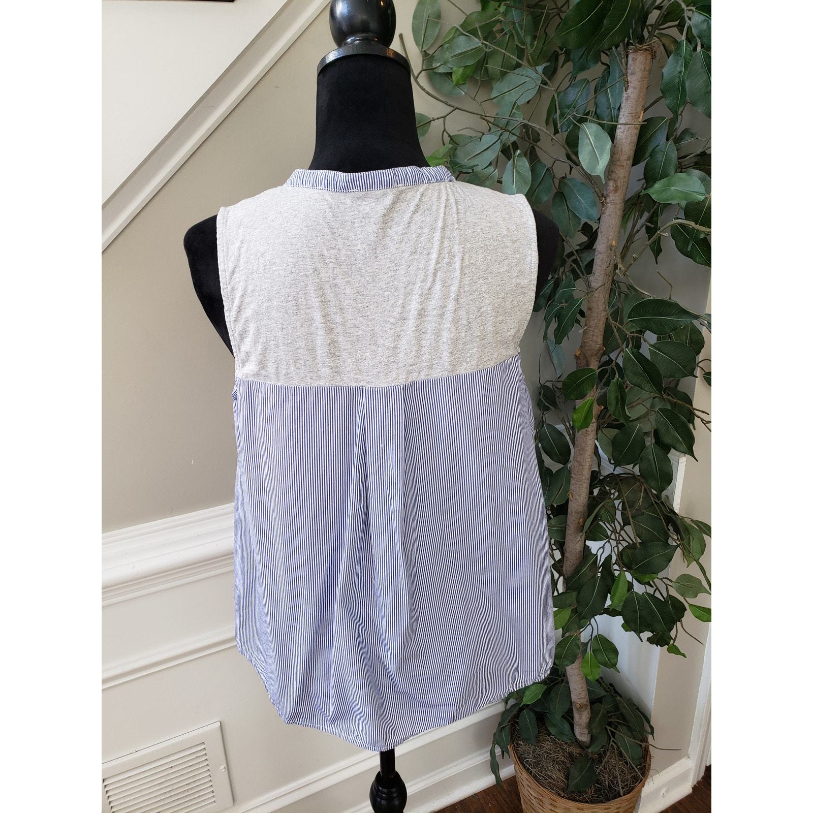 J. CREW Jersey Mixed Media Henley Tank Top Women M Blue Gray Stripe Button Front