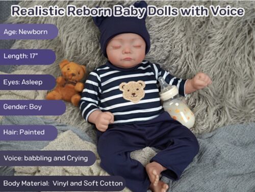 NEWBORN BABY BIY DOLL INTERACTIVE REALISTIC SOFT BODY LIFE 17” BREATHE HEARBEAT
