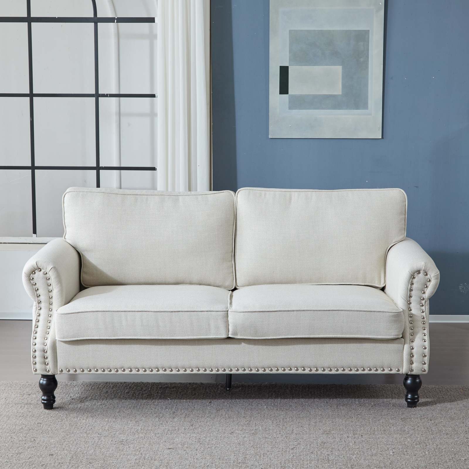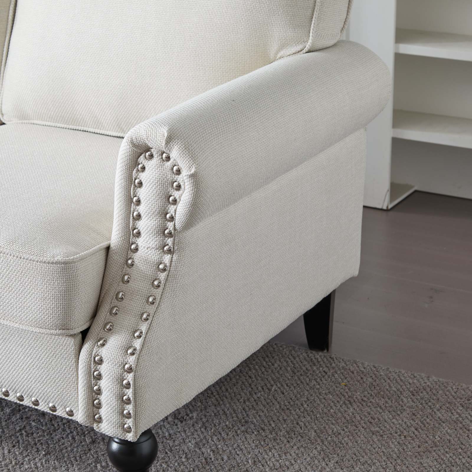 Nailhead Trim Aesthetic: This brass nickel-tone finish nailhead sofa boasts sophisticated air. Clean lines and minimal embellishments, make them easy to integrate into your living space