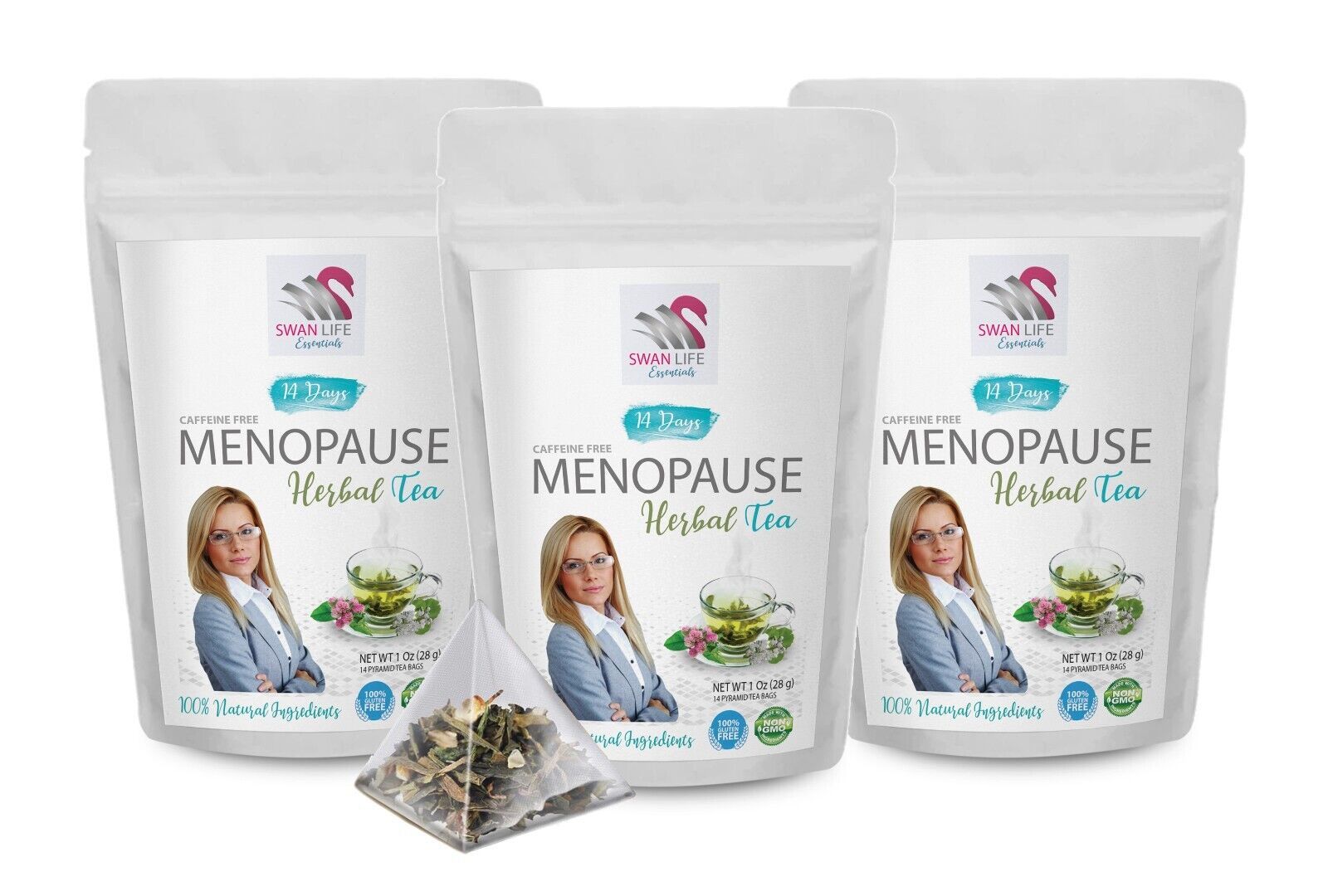 SWAN LIFE ESSENTIALS - MENOPAUSE HERBAL TEA FORMULA: If you are looking for natural menopause relief, our herbal tea may be a healthy option. The blend is combined with Black cohosh root, gingko leaf, red clover herb, cinnamon chip, eleuthero root, licorice root with natural peach flavor.