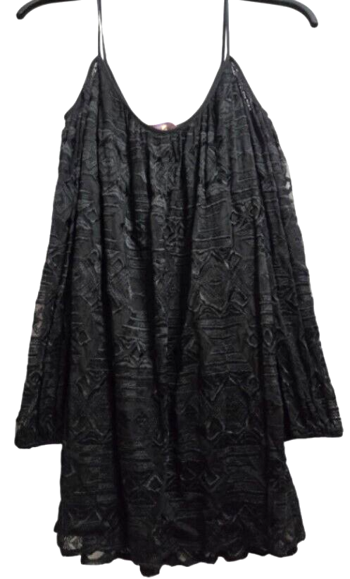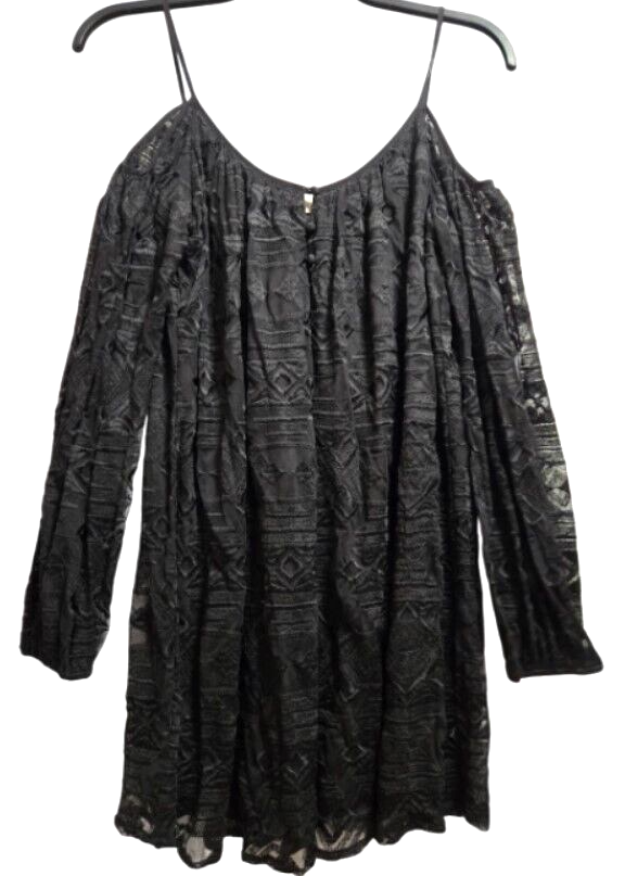 Lavender Brown Women Long Sleeve Cold Shoulder Black Party Lace Dress (M) NEW