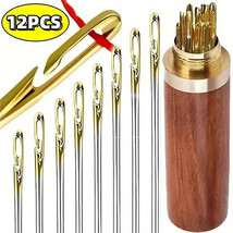 12pcs Stainless Steel Easy Thread Side Hole Sewing Needles, With Box Golden