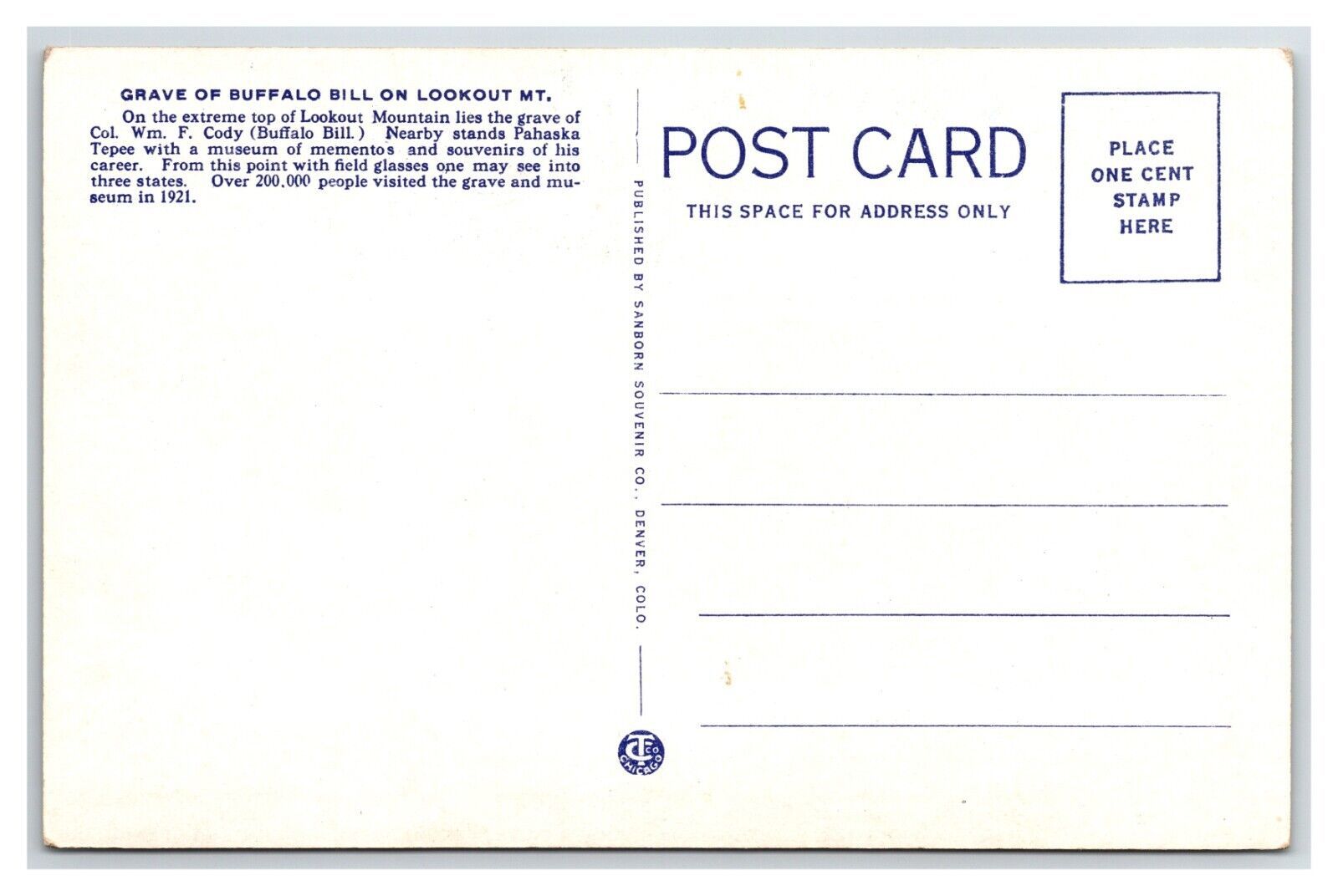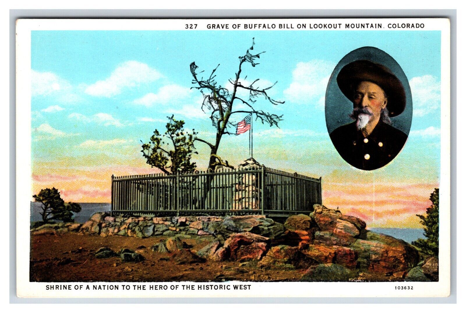 Grave of Buffalo Bill Lookout Mountain Colorado CO UNP WB Postcard S9