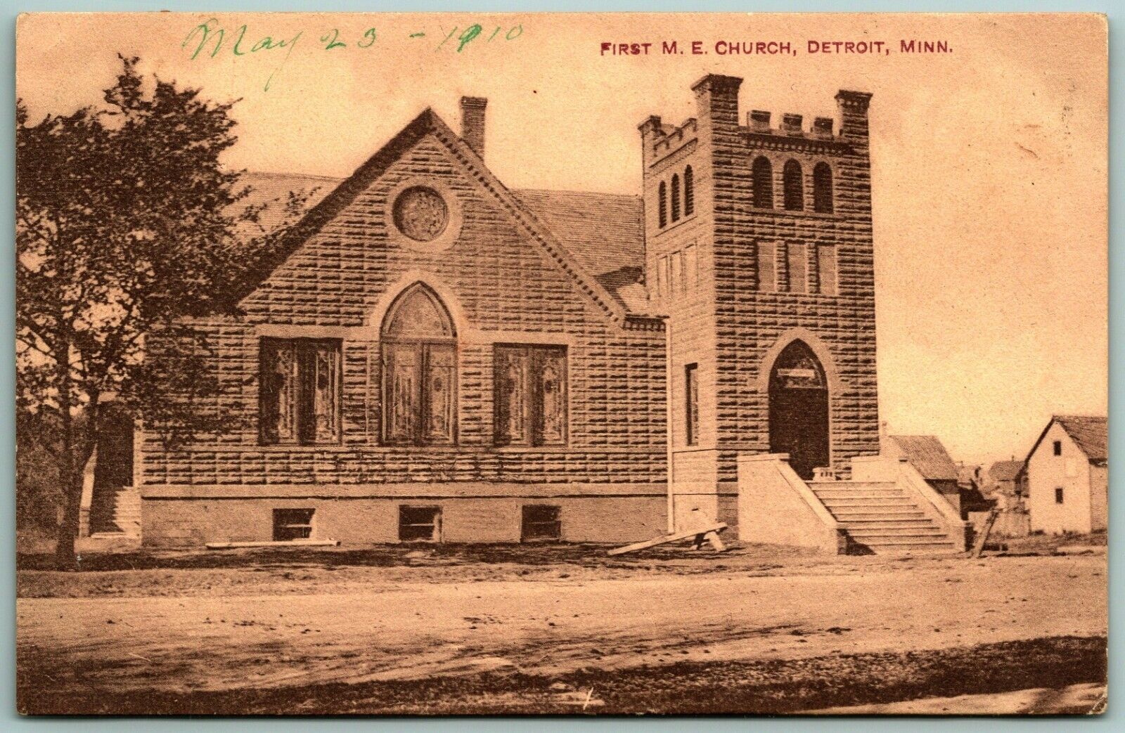 First Methodist Episcopal Church Detroit Minnesota MN 1910 Sepia DB Postcard J10