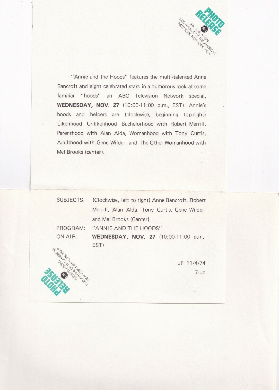 1974 ABC Press Photo "Annie and the Hoods" and 50 similar items