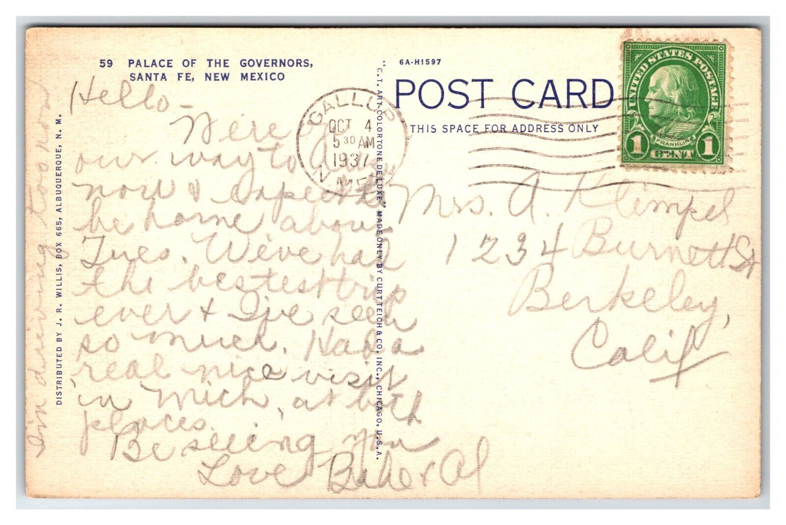 Palace of the Governors Santa Fe New Mexico NM Linen Postcard Z1
