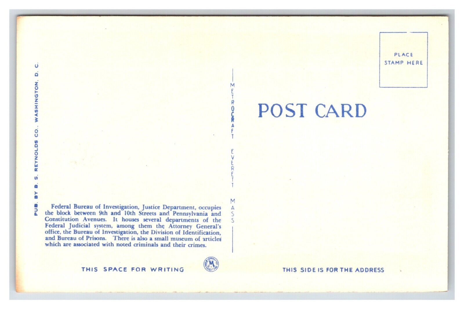 Federal Bureau of Investigation Building Washington DC UNP Linen Postcard N21