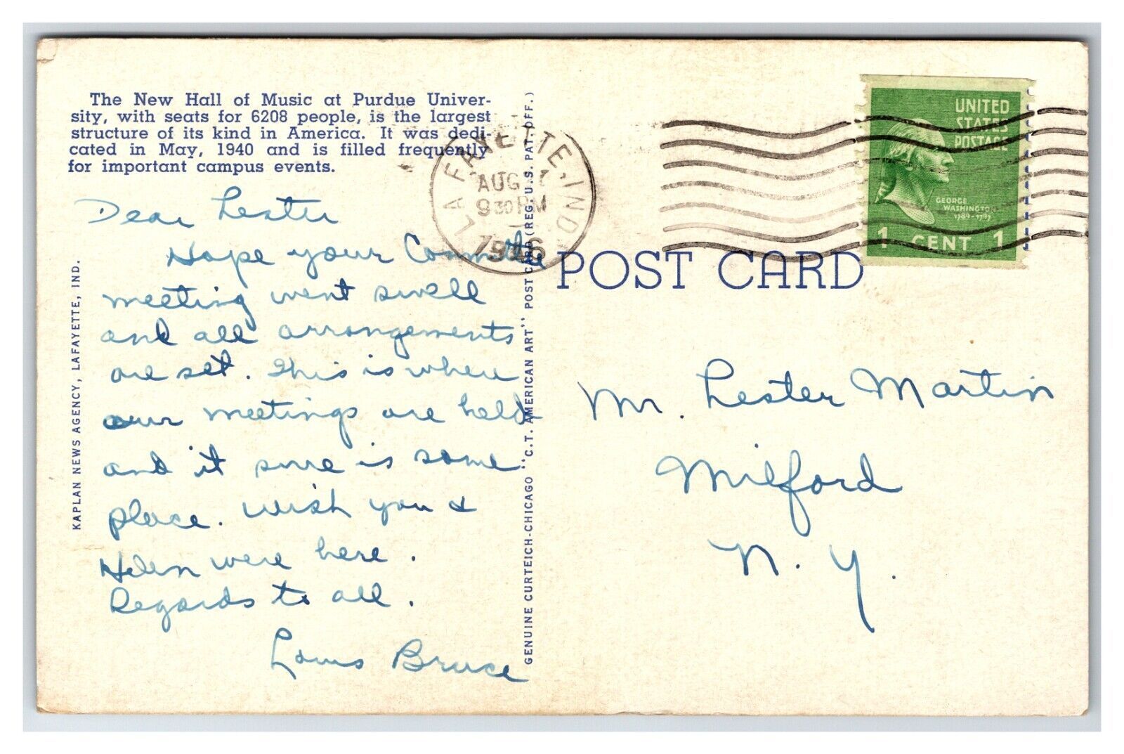 Hall Of Music Interior Purdue University Lafayette Indiana IN Linen Postcard M20