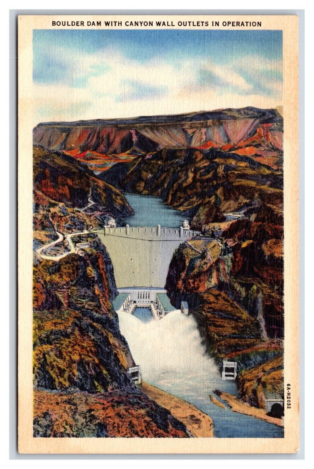 Canyon Wall Outlets Boulder Hoover Dam Boulder City Nevada UNP Linen Postard V4