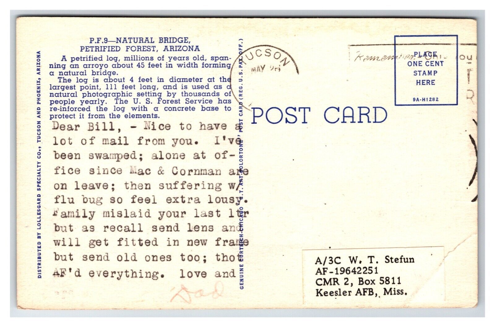 Natural Bridge Petrified Forest National Monument Arizona Linen Postcard Z2