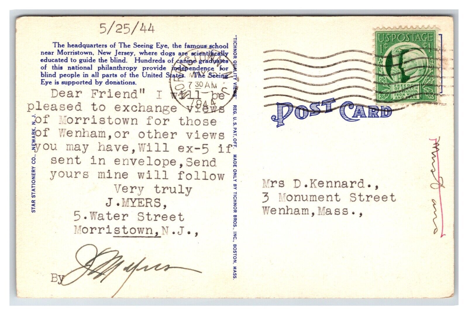 The Seeing Eye School for Blind Whippany NJ New Jersey Linen Postcard V11