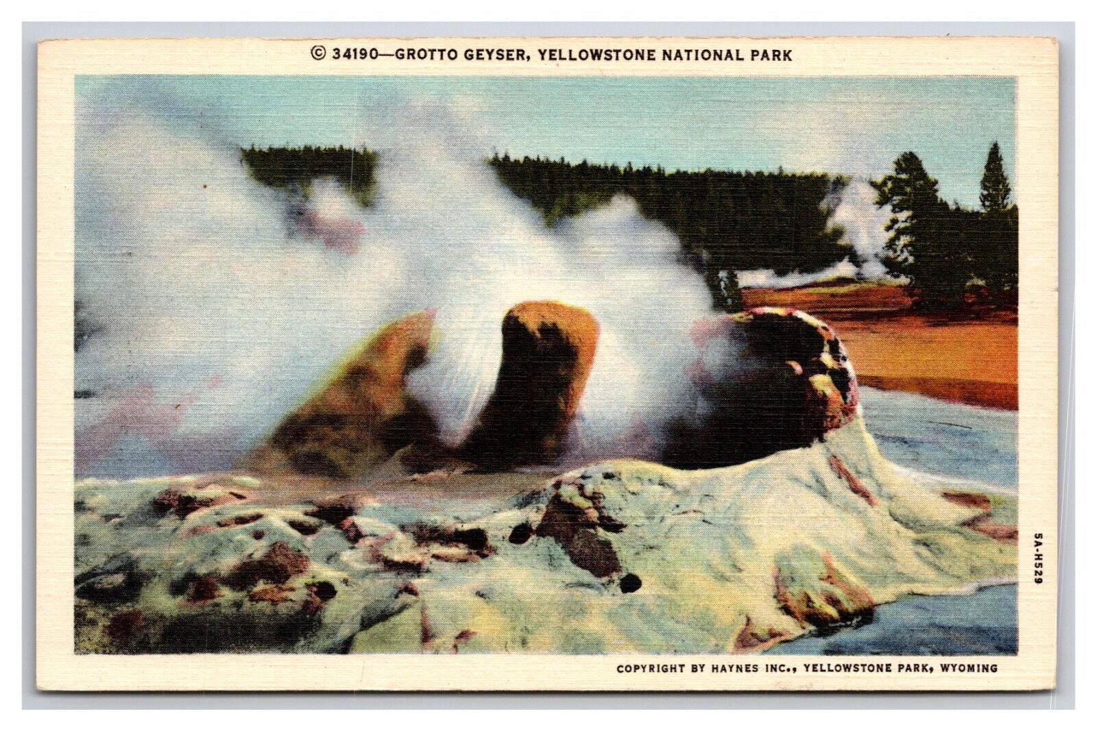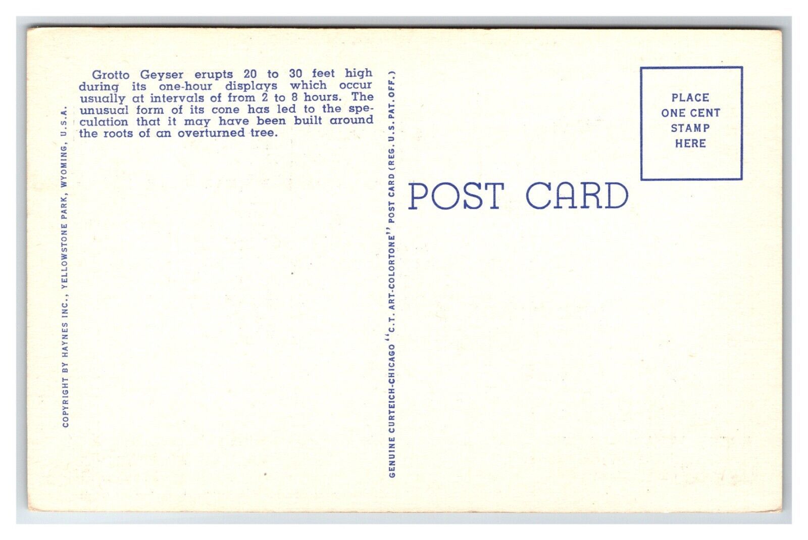 Grotto Geyser Yellowstone National Park Wyoming WY UNP Linen Postcard Z5