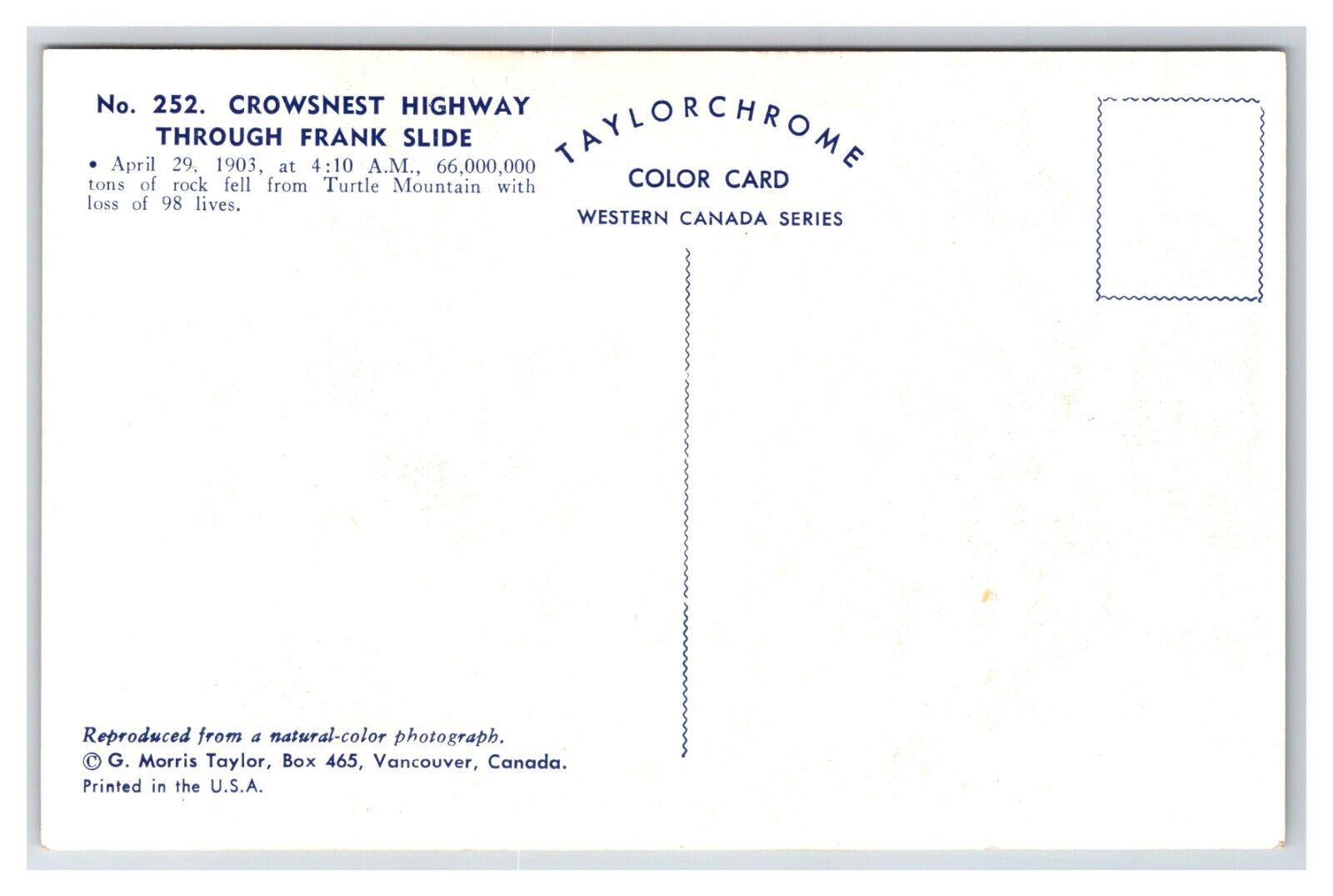 Crowsnest Hwy Frank Slide Turtle Mountain Alberta Canada UNP Chrome Postcard V1