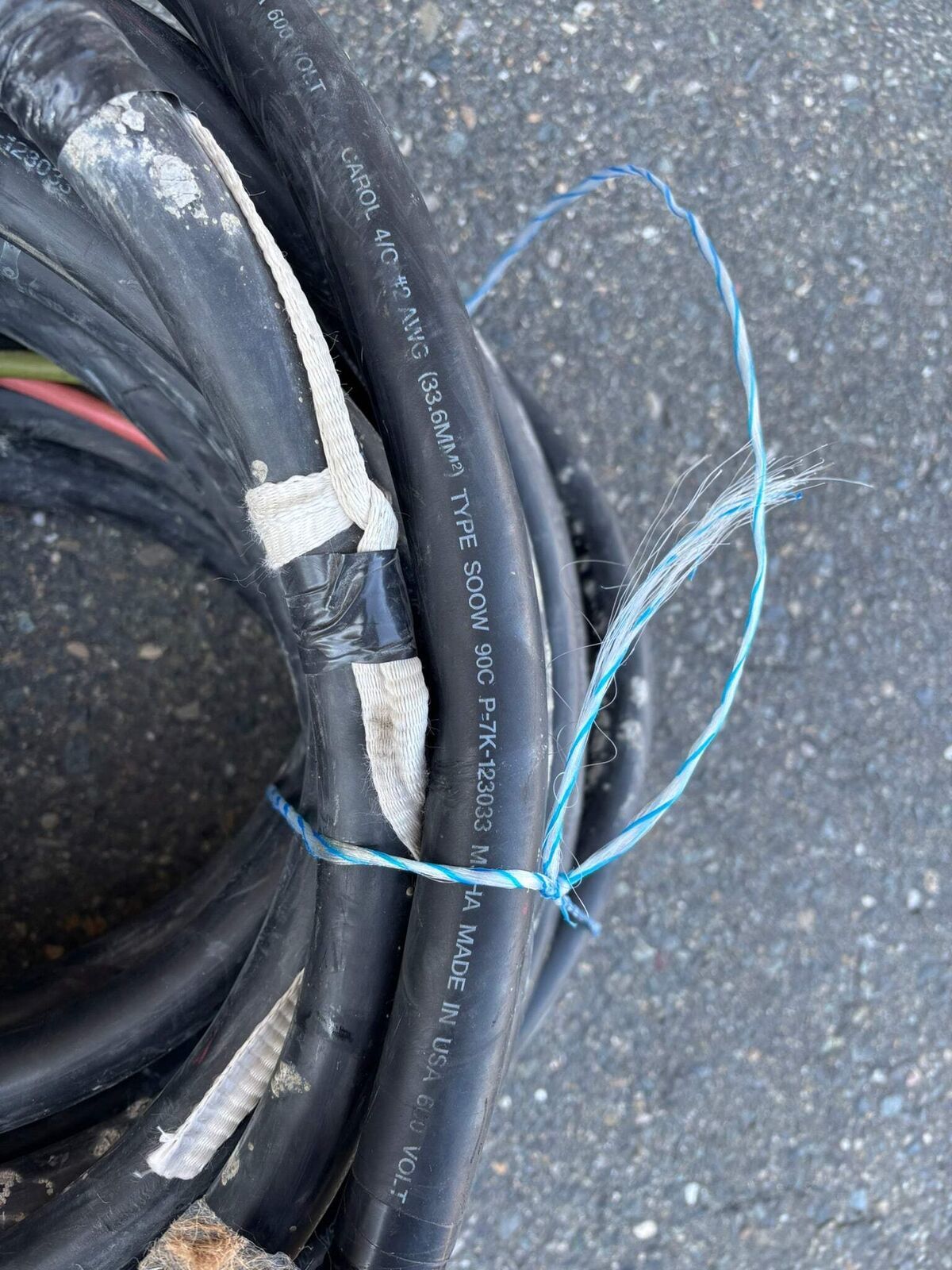 60 FT-CAROL Portable Cord 4 Conductors, 2 AWG, Black/Green/Red/White Wire SOOW and SJOOW portable cords are heavy-duty service cables designed with oil-resistant insulation and a flexible thermoset rubber jacket that withstands oil, water, and harsh weather conditions. The jacket hardens when exposed to heat, making it highly durable against aging, abrasion, moisture, sunlight, and ozone exposure. SOOW cords are rated for 600V, while SJOOW cords, known as junior service cords, are rated for 300V. As the most widely used portable cord, SOOW is ideal for industrial power applications, such as machinery, power tools, and marine equipment like dockside motors. Price $18.00 per foot About Us Welcome to Help! Resale, your go-to consignment shop where value meets quality. At Help! Resale, we're dedicated to providing you with an exceptional shopping experience, whether you're looking to find the best deals or consign your gently used items. Help Resale 7200 Fair Oaks Blvd Ste 120 Carmichael CA 95608 Business Hours : Monday-Friday: 9:00 am to 5:30 pm (PST) All product and company names are trademarks TM or registered trademarks of their respective holders. Use of them does not imply any affiliation with or endorsement by them.
