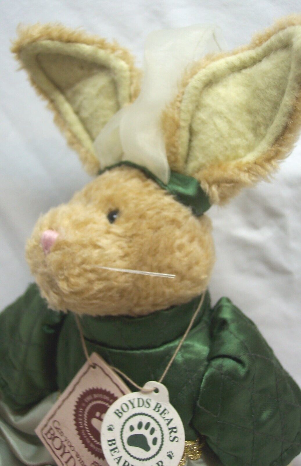 This is a Vintage Boyds Bears Bailey Friends EMILY BABBIT THE RABBIT In Green Dress Plush Stuffed Animal Toy W/ BOOK from 2000. Made by Boyd's. It is about 10 inches tall. It is in great condition with the original tag and has a little paperback book. It is CLEAN. There are No tears, stains or defects. Combine auctions to save on shipping. Please contact me if you need to make other payment arrangements. EAG