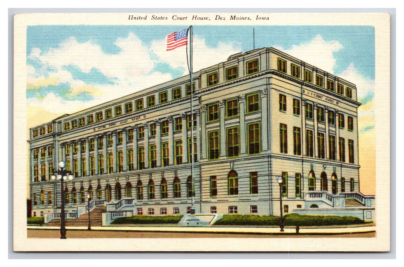 United States Court House Des Moines Iowa IA UNP Linen Postcard J20
