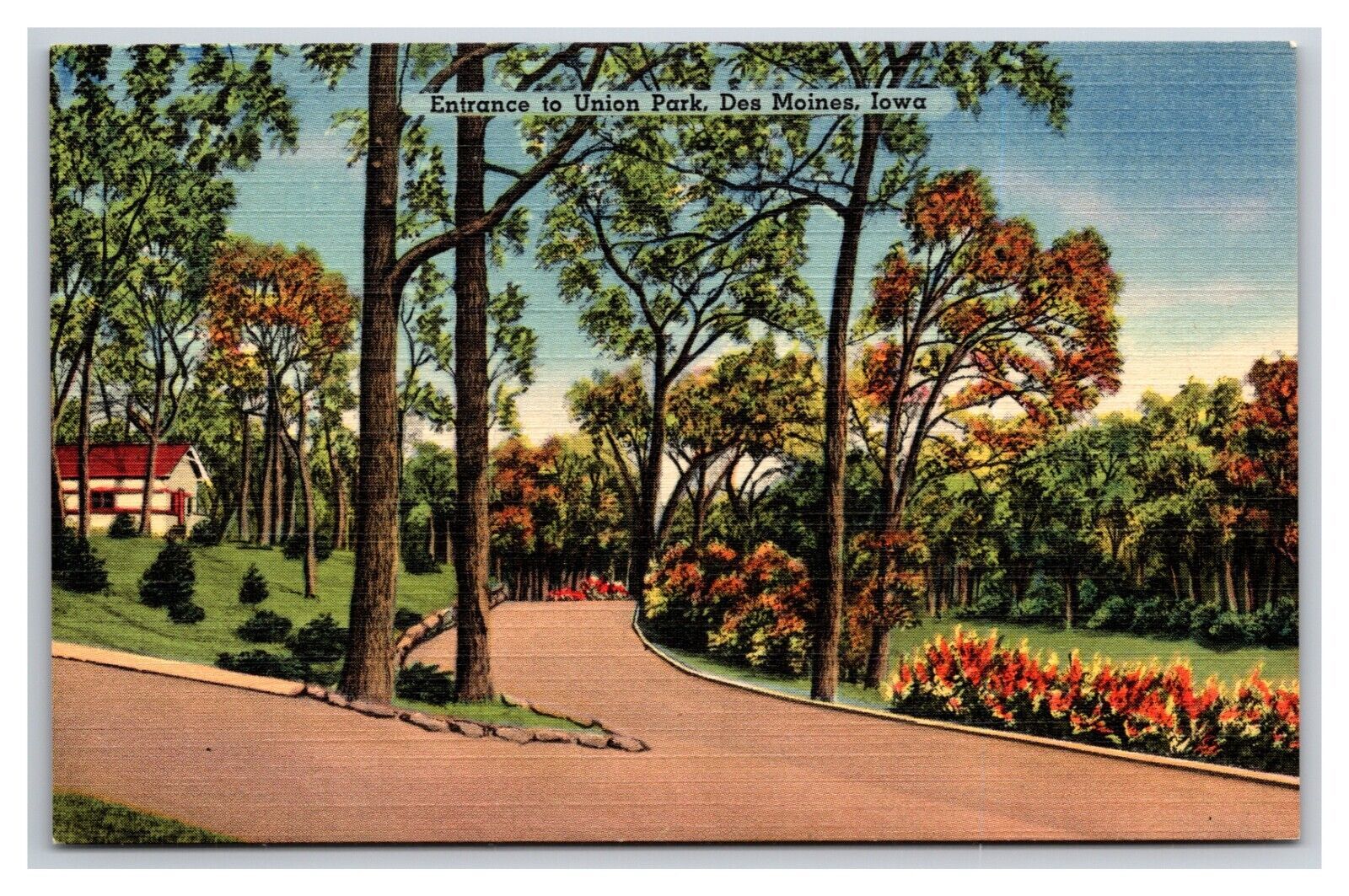 Entrance to Union Park Des Moines Iowa IA UNP Linen Postcard J20