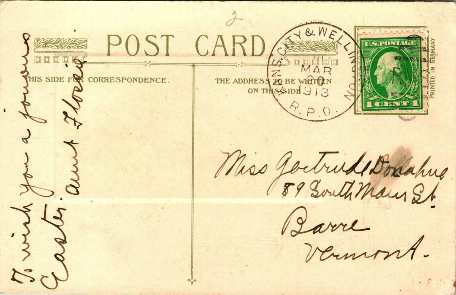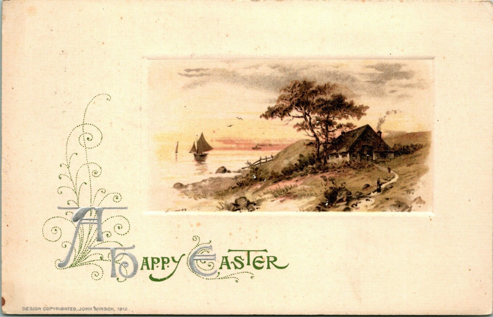 Vtg Postcard 1912 John Winsch A Happy Easter Cabin Tree Boat