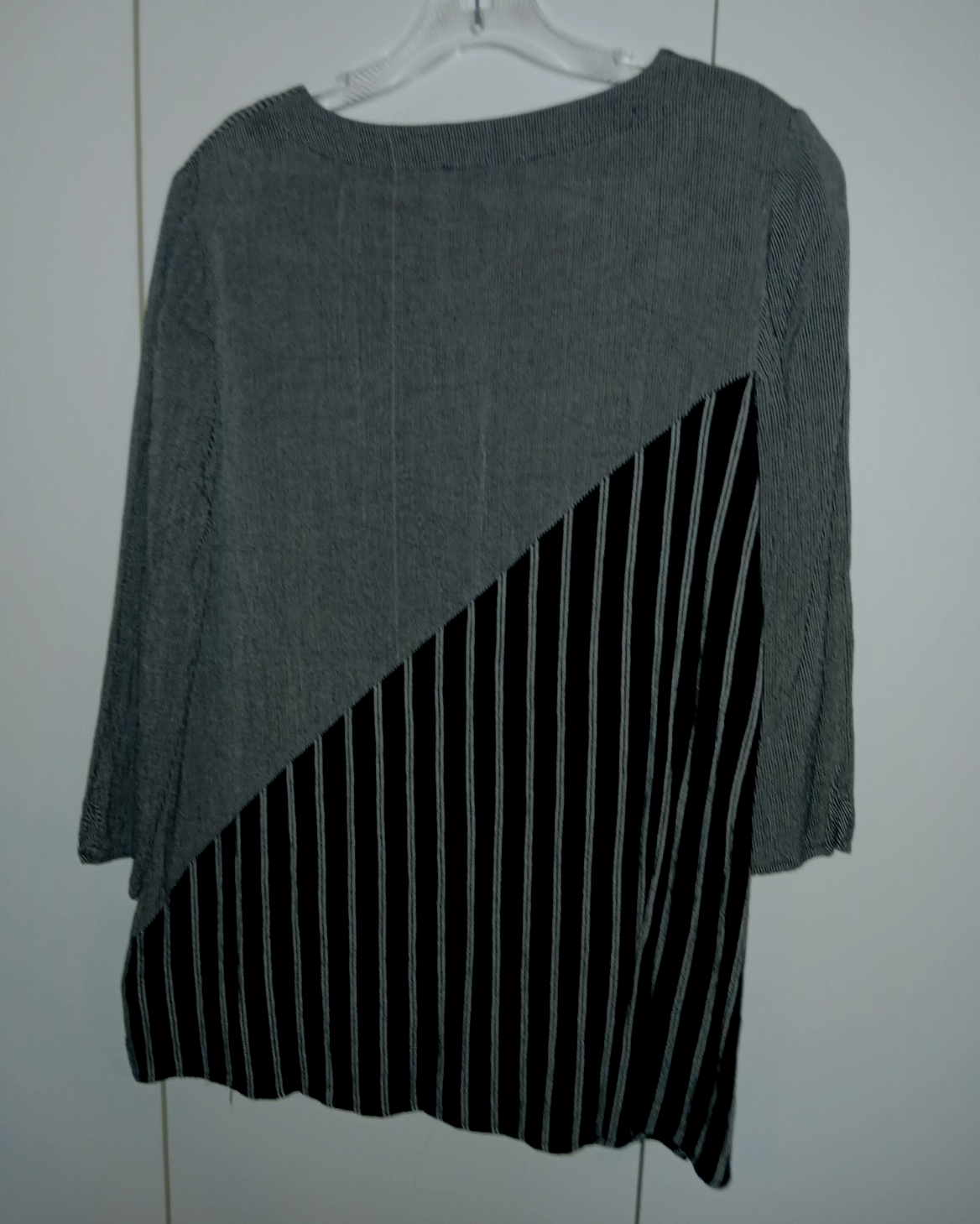 COLDWATER CREEK LADIES 3/4-SLEEVE PULLOVER GRAY/BLACK RAYON/COTTON TOP-S-NWOT