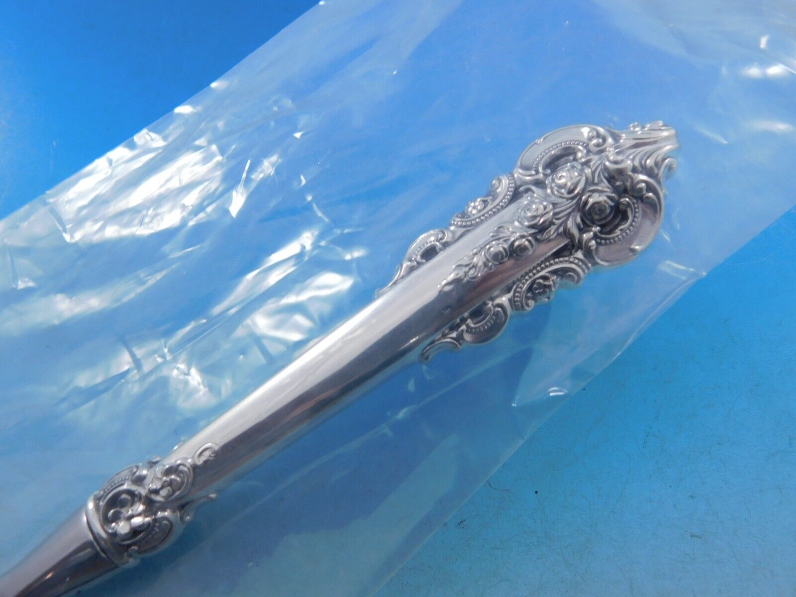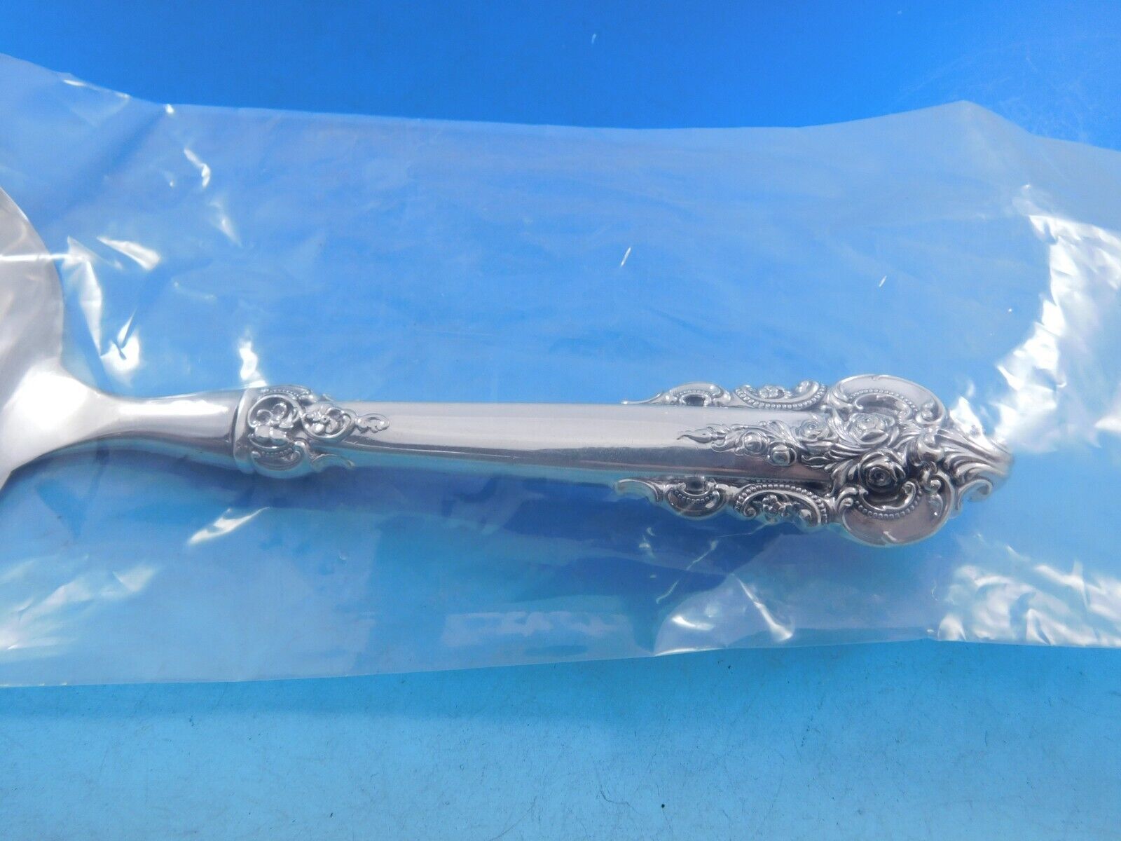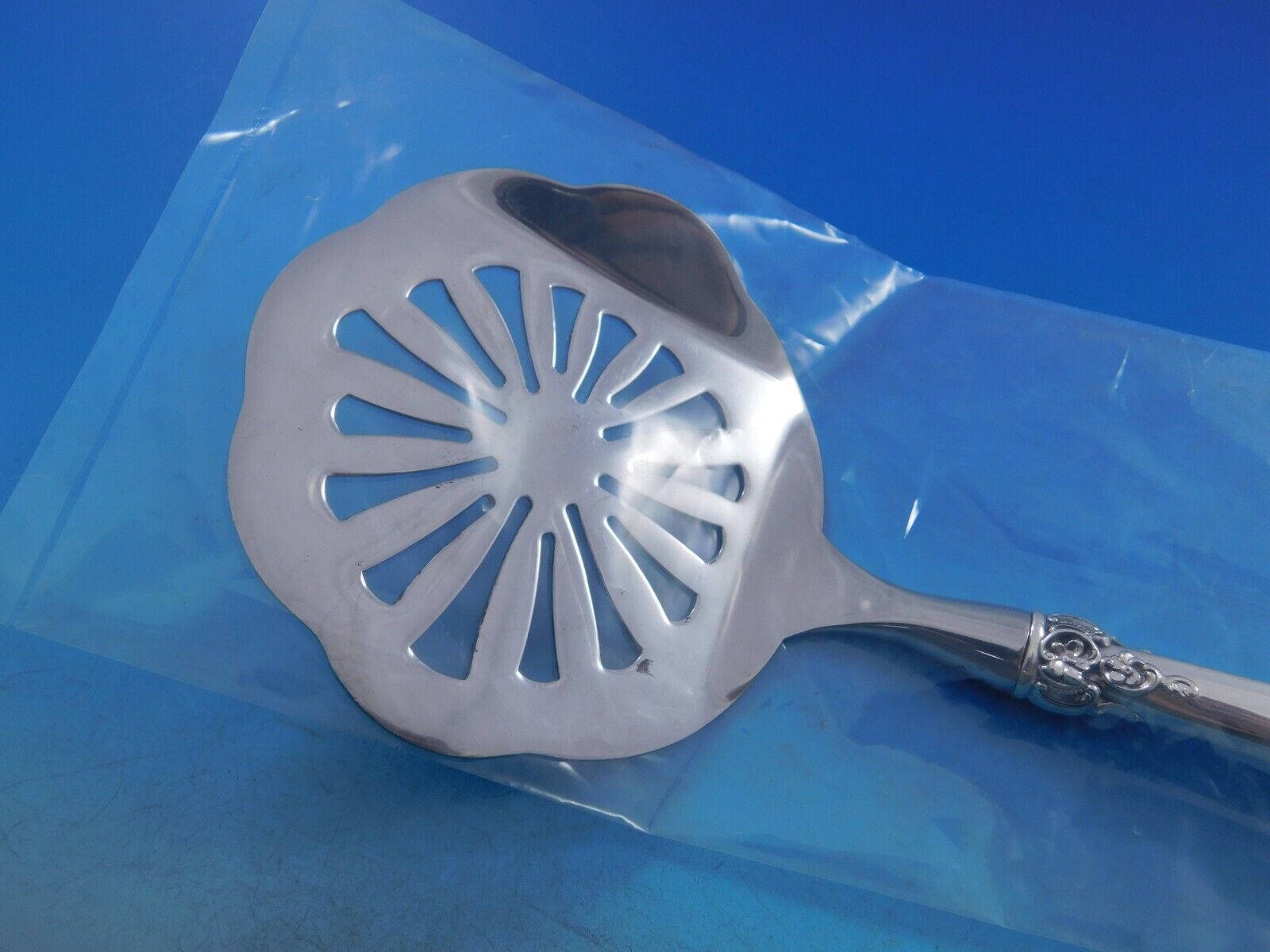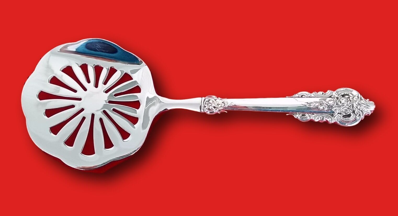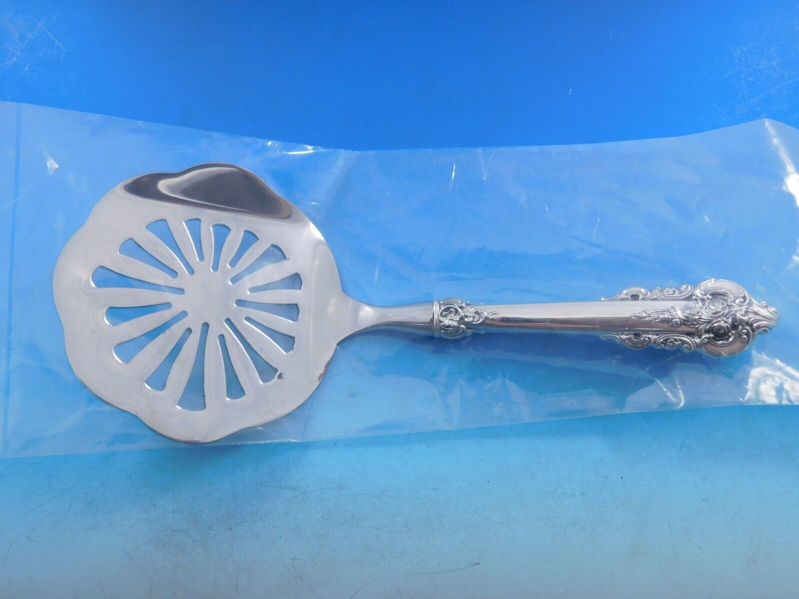 Sterling Silver hollow handle with stainless implement TOMATO SERVER 8 7/8" CUSTOM MADE in the pattern GRANDE BAROQUE BY WALLACE. It is not monogrammed and is in excellent condition.